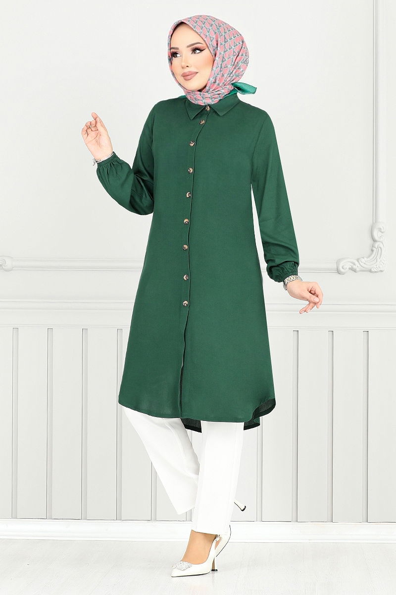 Introducing the Button-Front Tunic, an ideal choice for those who embrace modest fashion. Made from viscose fabric, it offers a lightweight and breathable feel suitable for all seasons. It features a shirt collar and buttoned front for a blend of style and practicality, while the elasticated cuffs enhance comfort. Hand wash only.