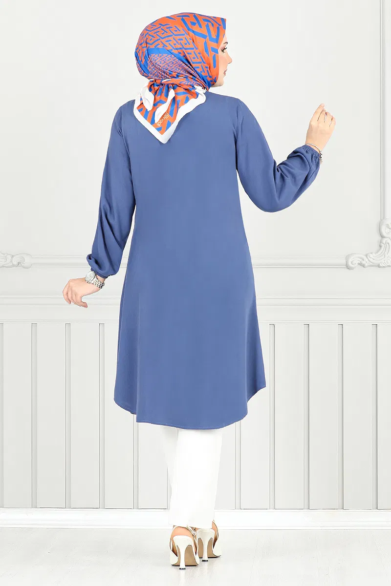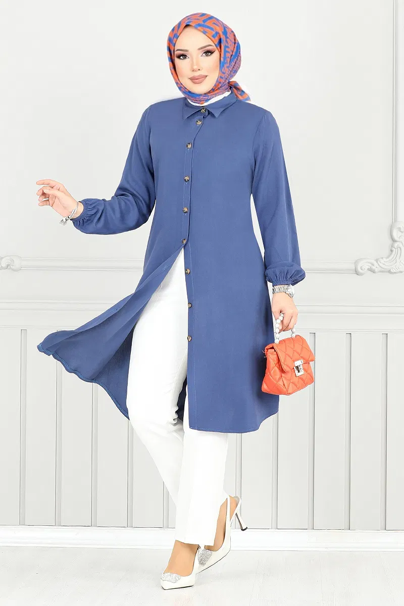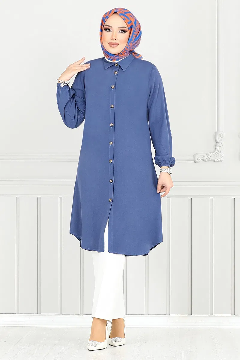 Introducing the Button-Front Tunic, an ideal choice for those who embrace modest fashion. Made from viscose fabric, it offers a lightweight and breathable feel suitable for all seasons. It features a shirt collar and buttoned front for a blend of style and practicality, while the elasticated cuffs enhance comfort. Hand wash only.