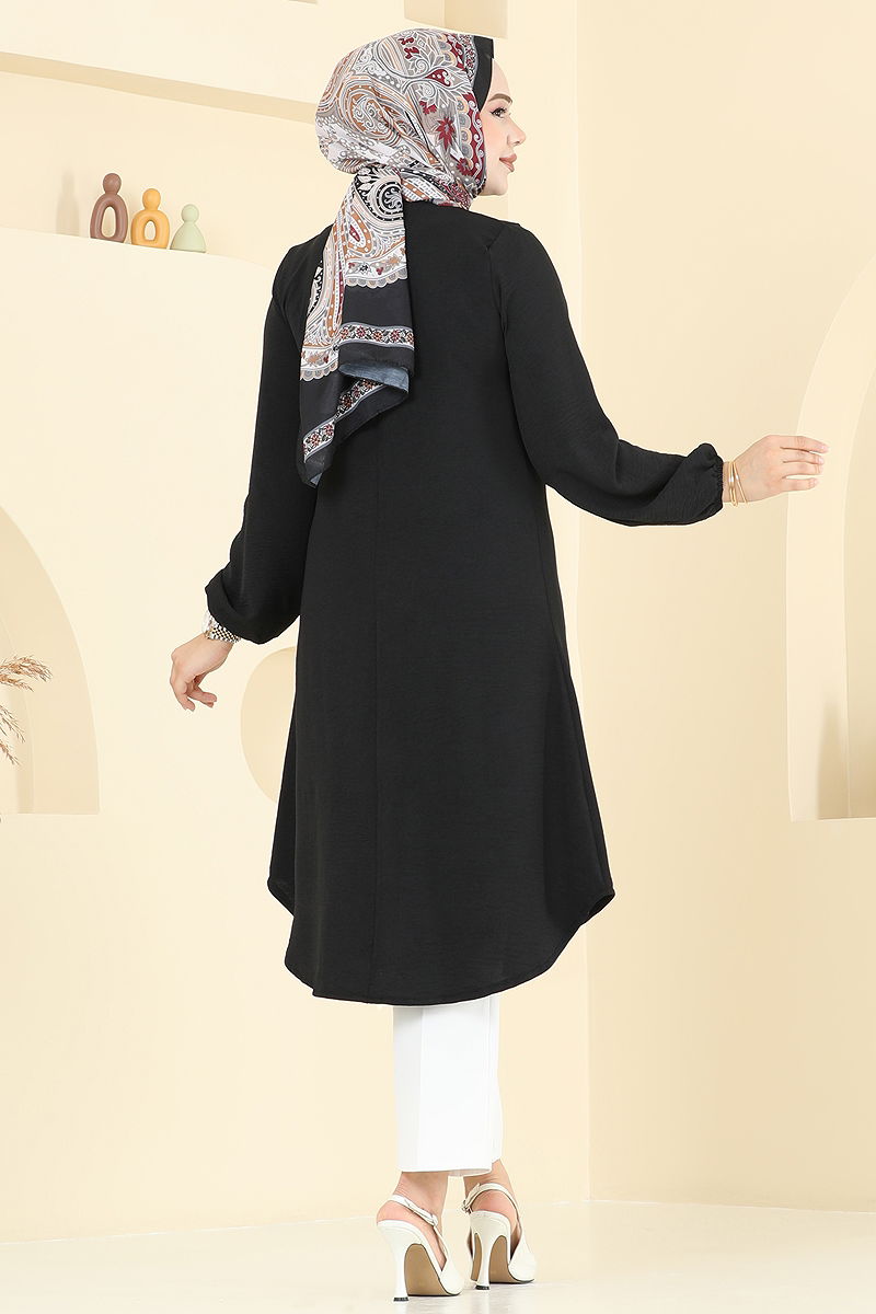 يوجد زر يمكن استخدامه من الخلف. المنتج لديه ياقة دائرية. غير مبطنة. الأزرار هي إكسسوارات. السوار مطاطي. قد يكون هناك اختلاف في الدرجة اللونية في المنتج بسبب التقاط الصور الفوتوغرافية.