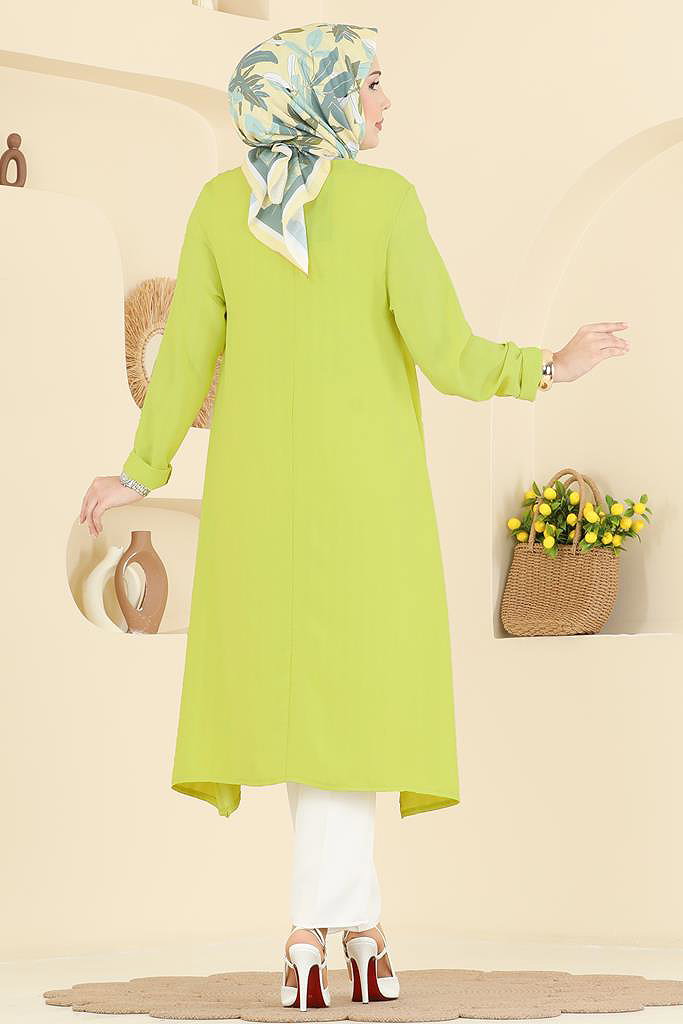 المنتج لديه ياقة دائرية. المنتج به أزرار من الخلف. غير مبطنة. الحزام غير متضمن. قد يكون هناك اختلاف في الدرجة اللونية في المنتج بسبب التقاط الصور الفوتوغرافية.