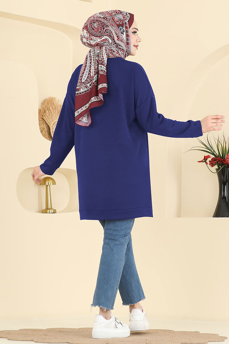 The Arm Detailed Modal Tunic is an ideal product for modest clothing. Suitable for all seasons, this tunic is made from modal fabric and provides comfort with its soft texture. It can be washed delicately at 30 degrees without spinning. Featuring a crew neckline, the tunic offers freedom of movement with side slit details. It is without lining and does not show the inside. The tunic is embellished with elegant accessory details, and the item worn by the model is size 38.