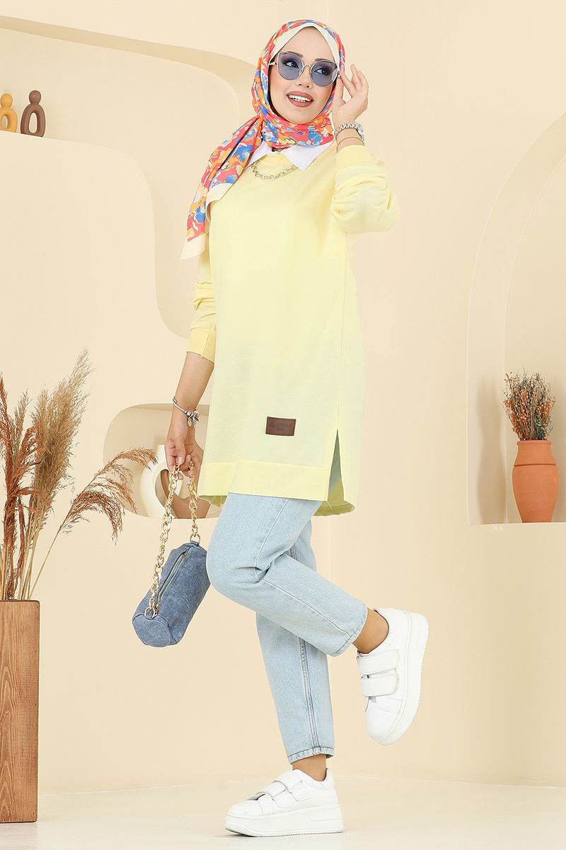 Product Feature : It is a new season hijab fashion product. The product has a Cycling collar. The tunic has a side slash.. Unlined. The coat of arms detail is sewn. There may be a tonal difference in the product due to concept photo shoots.