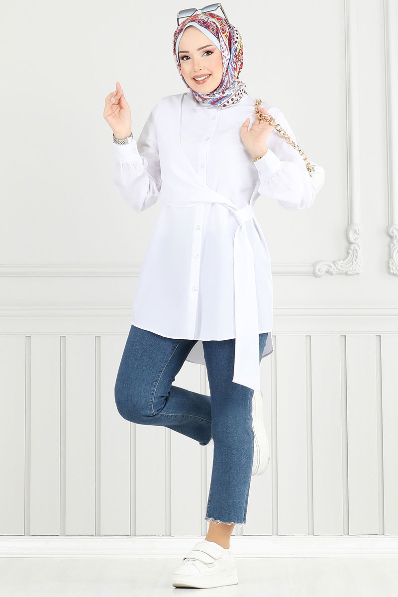 يحتوي على حزام يمكن تثبيته من الجانب. المنتج لديه ياقة القميص. المنتج به أزرار من الأمام. غير مبطنة. يتم خياطة الحزام على المنتج. أزرار الكفة نشطة. قد يكون هناك اختلاف في الدرجة اللونية في المنتج بسبب التقاط الصور الفوتوغرافية.