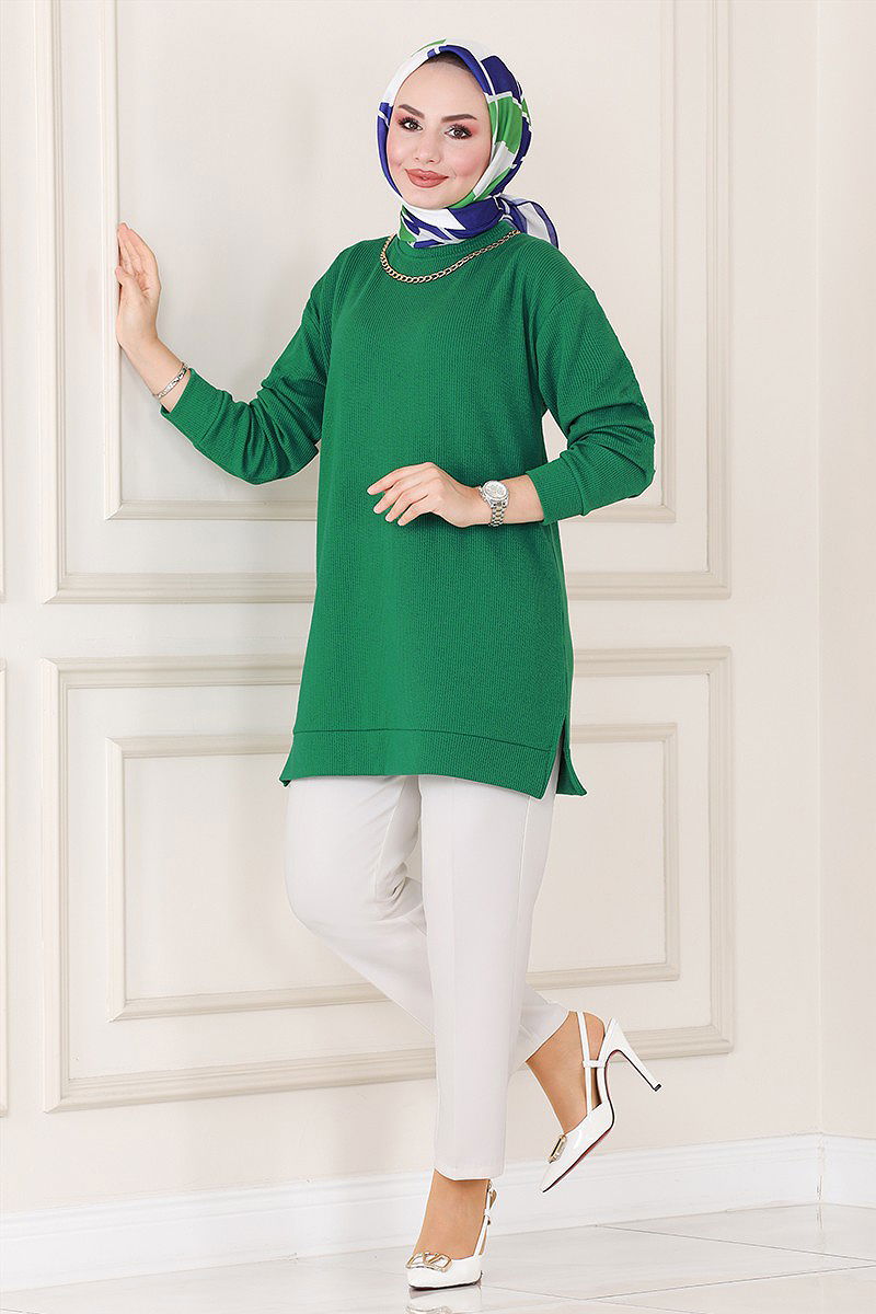 بلوز طويل اللون الأخضر الخصوصية
