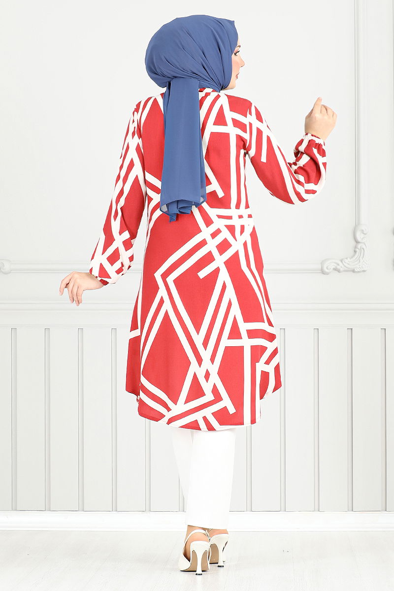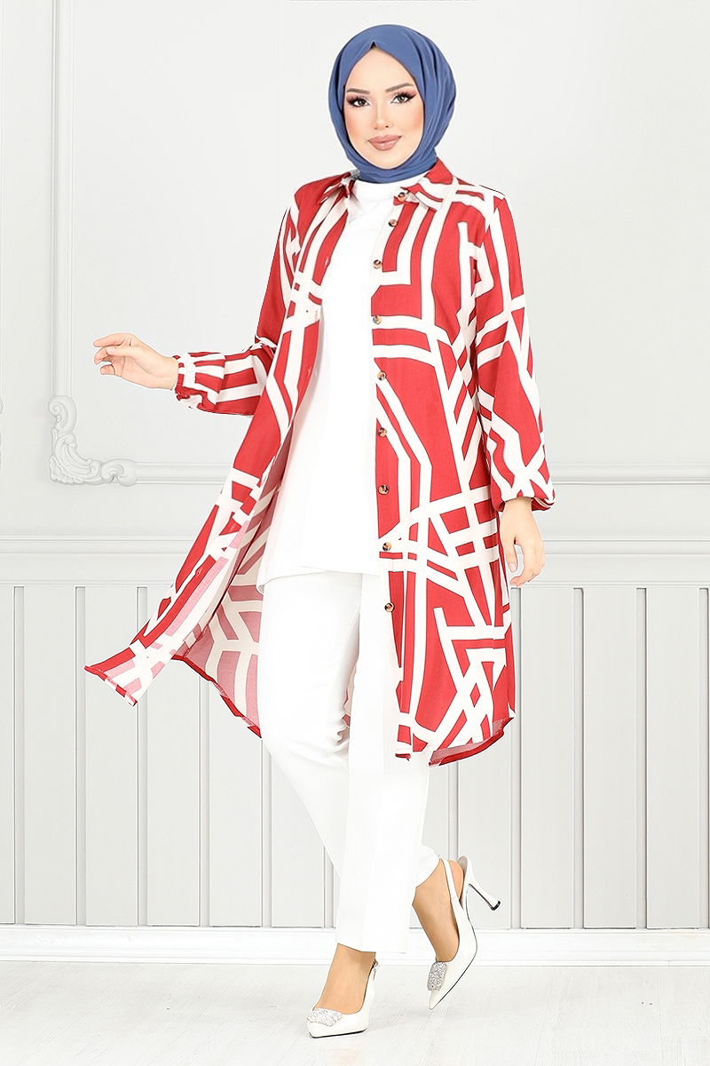 Shirt Collar Viscose Tunic is a modest fashion piece. Suitable for spring and summer seasons. Hand wash recommended. The tunic features a shirt collar and front buttons. It is unlined. (The product on the model is size 38.) The cuffs are elasticated.