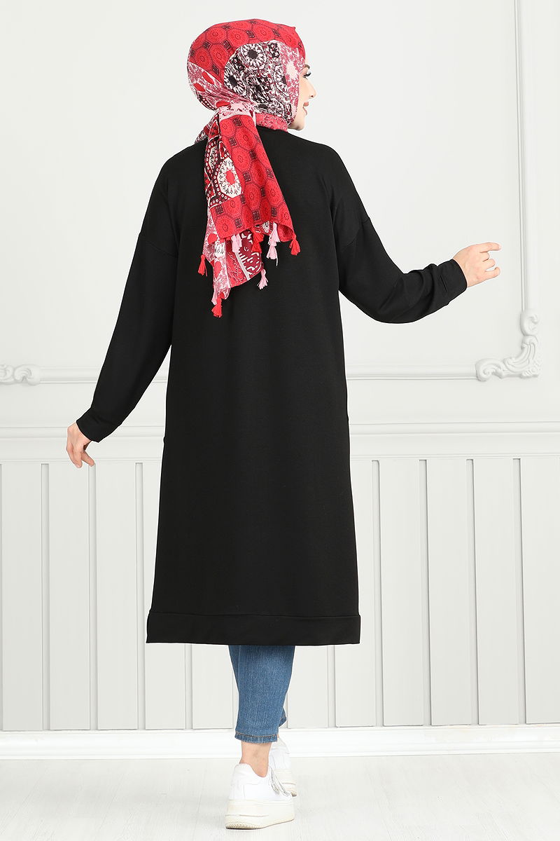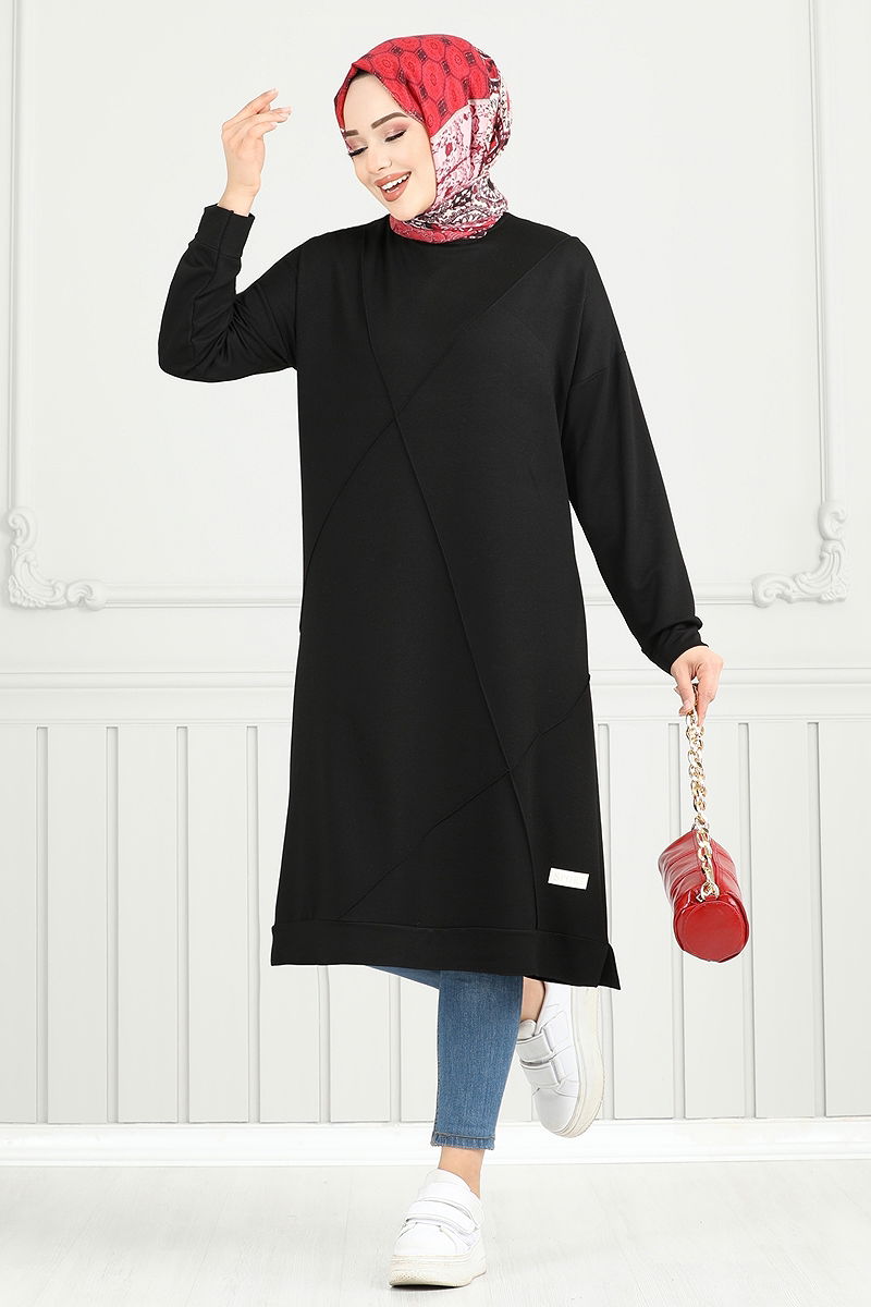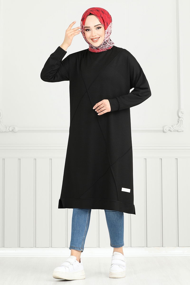The Arma Detail Hijab Tunic is a stylish choice suitable for all seasons. Made from carefully selected crystal double-thread fabric, this tunic offers a lightweight and comfortable experience with its unlined structure. It features a crew neck and side slits for a modern look, while the embellished detail completes your elegance. It can be washed at 30 degrees on a gentle cycle, extending its lifecycle. Model size: 38.