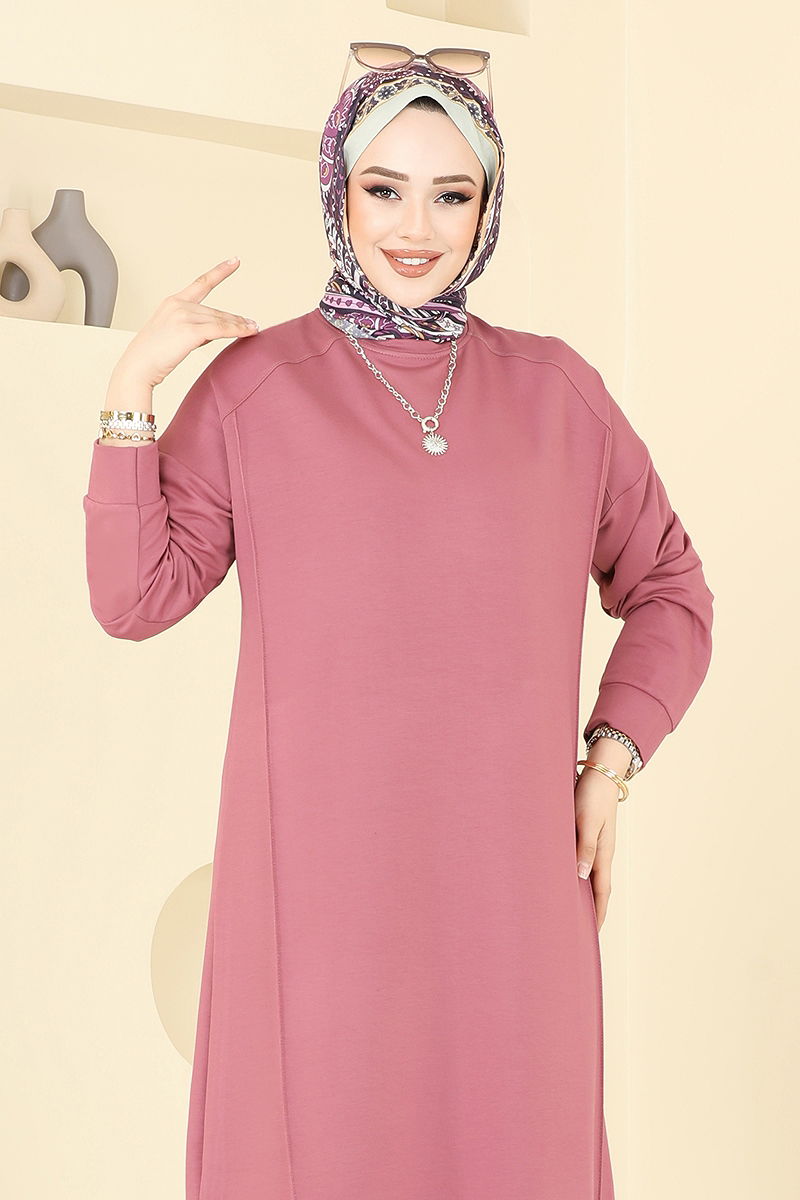 The Arm Detailed Hijab Tunic is a versatile piece perfect for all seasons. It can be washed gently at 30 degrees. Made from Crystal Double Yarn fabric, this tunic features a crew neckline and side slits. It is unlined. Enhance your elegance with its sewn arm details. This model is size 38.
