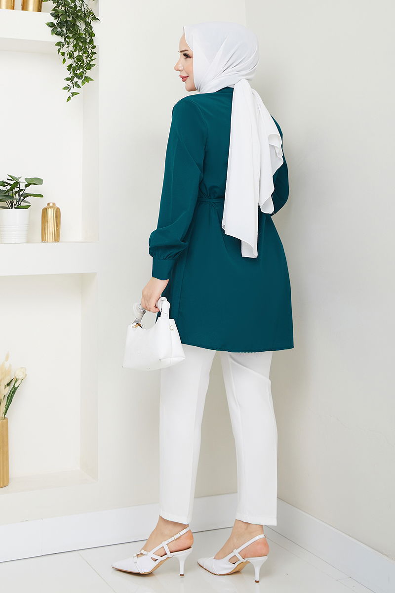 المنتج لديه ياقة القميص. المنتج به أزرار جيزلي. غير مبطنة. الحزام متضمن، ،يمكن استخدامها حسب الرغبة أزرار الكفة نشطة. قد يكون هناك اختلاف في الدرجة اللونية في المنتج بسبب التقاط الصور الفوتوغرافية.