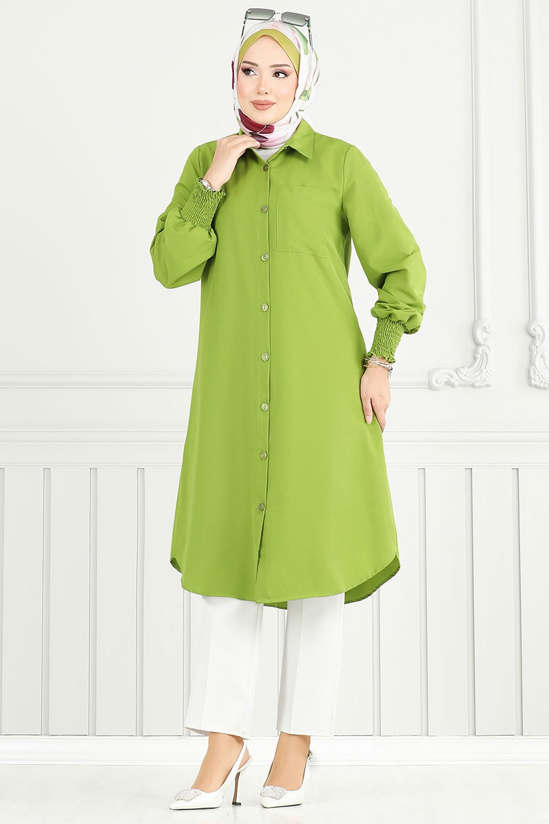 Product Feature : It is a new season hijab fashion product. The product has a Shirt collar. The product has From the front buttons. Unlined. The chest pocket is active. The cuff is rubberized. There may be a tonal difference in the product due to concept photo shoots.