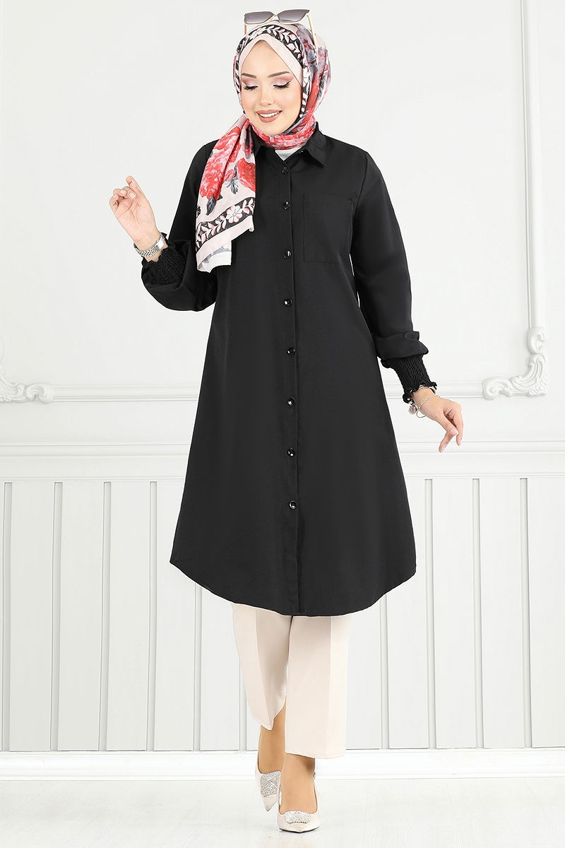 Product Feature : It is a new season hijab fashion product. The product has a Shirt collar. The product has From the front buttons. Unlined. The chest pocket is active. The cuff is rubberized. There may be a tonal difference in the product due to concept photo shoots.