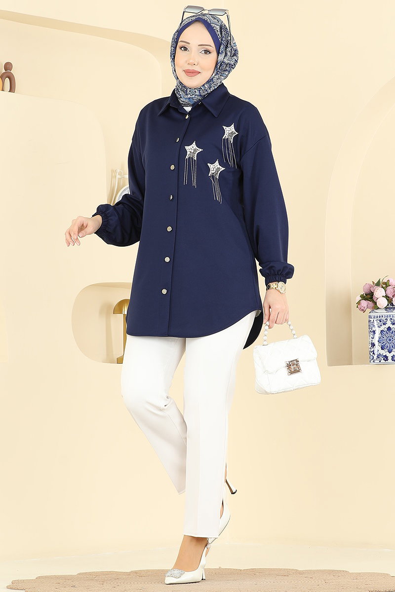 المنتج لديه ياقة القميص. المنتج به أزرار من الأمام. يتم لصق الحجارة. السوار مطاطي. قد يكون هناك اختلاف في الدرجة اللونية في المنتج بسبب التقاط الصور الفوتوغرافية.