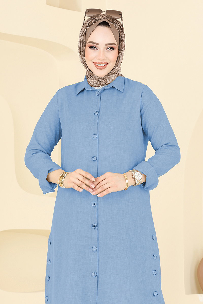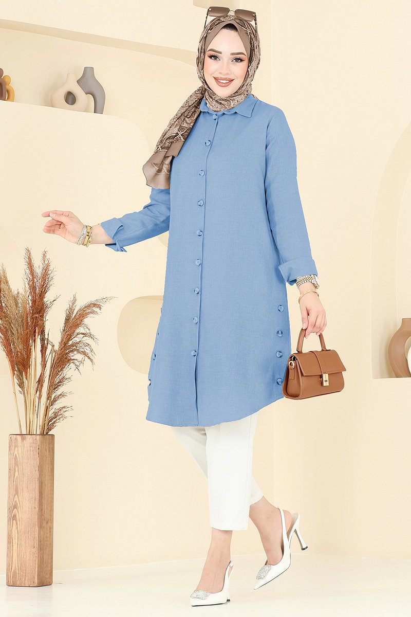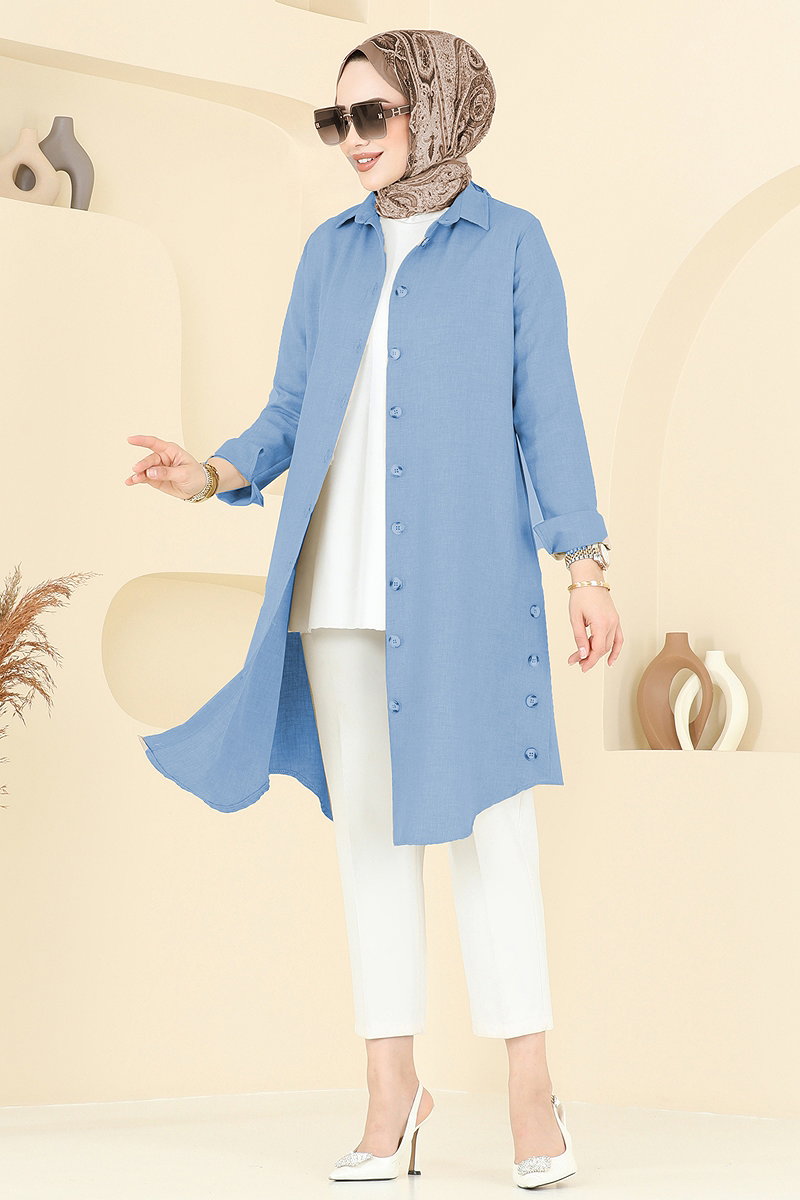 Product Feature : It is a new season hijab fashion product. The product has a Shirt collar. The product has From the front buttons. Slach buttons are an accessory.. Unlined. Pattern differences may be seen in button details. Accessories are not included. Cuff buttons are active. There may be a tonal difference in the product due to concept photo shoots.