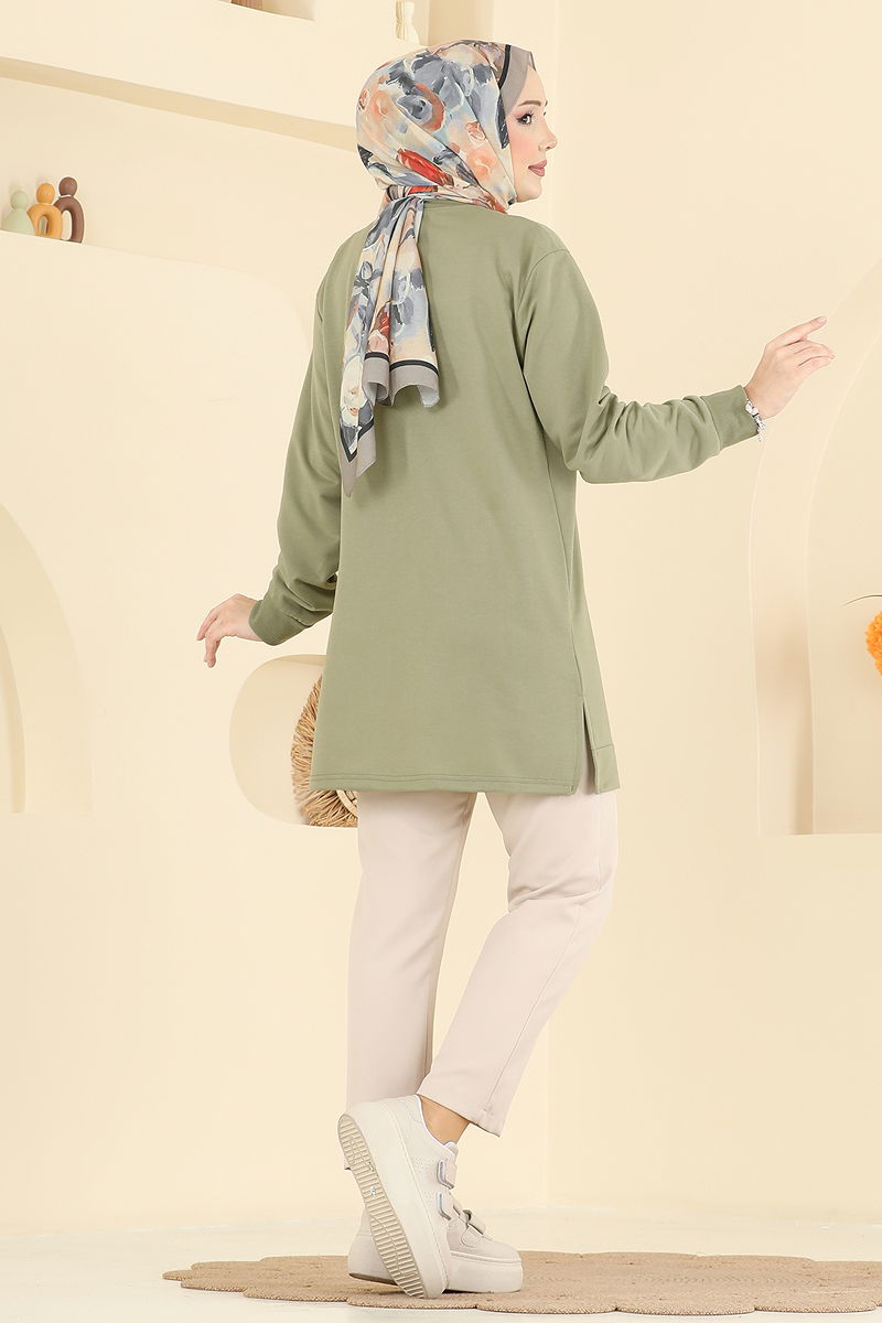 Product Feature : It is a new season hijab fashion product. The product has a Cycling collar. The tunic has a side slash.. It's unlined. It's see-through.. The stones are glued. There may be a tonal difference in the product due to concept photo shoots.