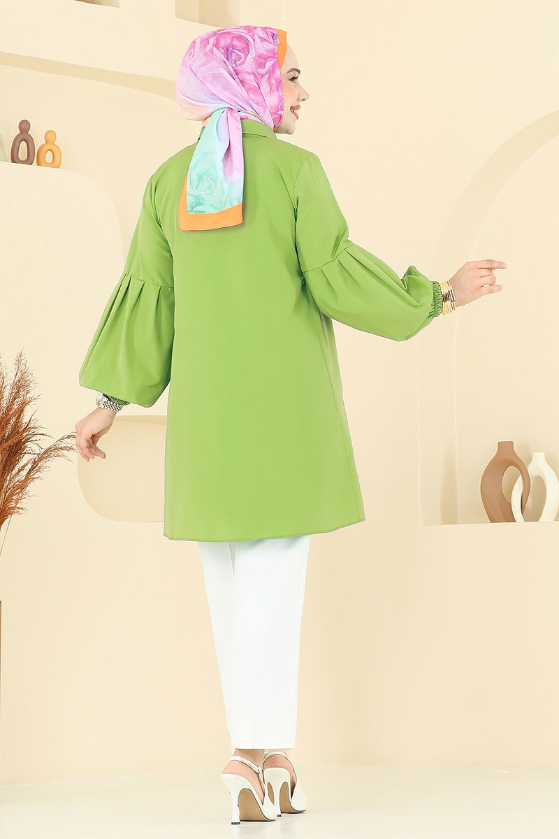 The Shirt Collared Tunic is an ideal modest wear piece that blends design and comfort for all seasons. This product can be washed at 30 degrees on a gentle cycle and is made from terrycotton fabric. Its shirt collar and front button design add elegance while the elastic cuffs enhance ease of use. The unlined structure offers a light and comfortable fit. The product displayed in size 38 gives a perfect idea of the fit.