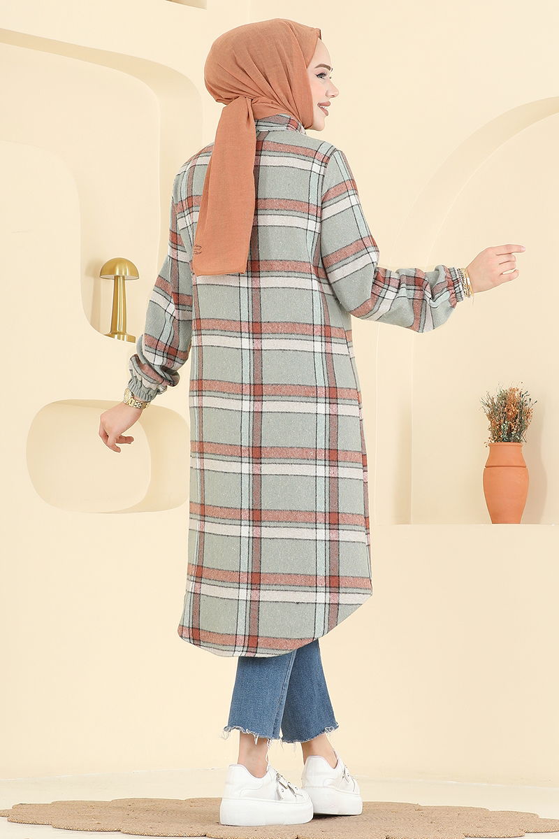 Colorful Patterned Plaid Tunic is an ideal choice for autumn and winter seasons. This tunic, which can be washed delicately at 30 degrees, is made from plaid fabric. It offers a stylish look with a shirt collar and buttons on the front, while its unlined structure and elastic cuffs ensure comfort. The model in the product is size 38 and is suitable for modest fashion.
