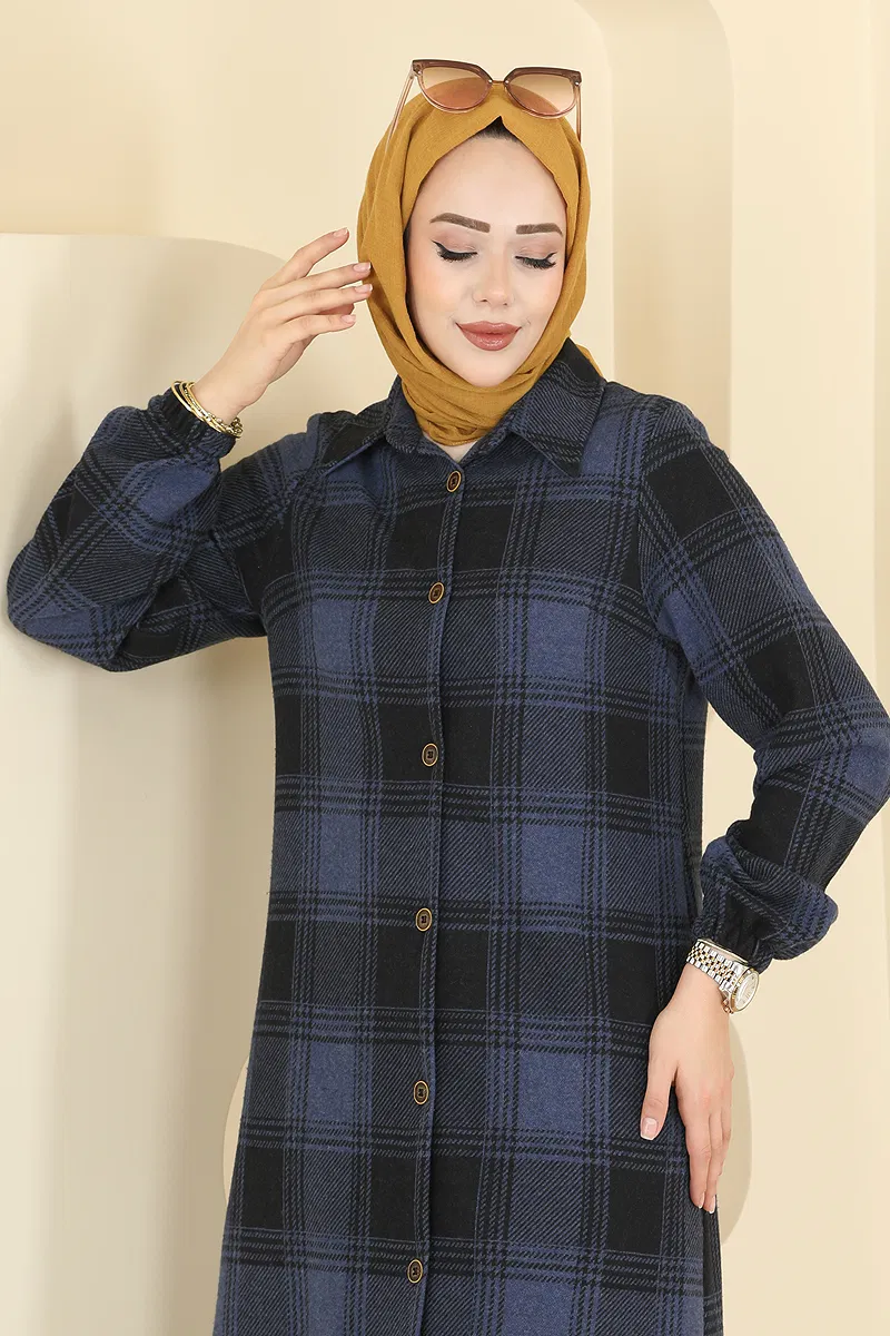 The Checkered Pattern Lumberjack Tunic is perfect for autumn and winter, bringing elegance and comfort to the modest fashion scene. With a shirt collar and front button design, this tunic offers practical use and is lightweight and comfortable thanks to its unlined structure. Able to be washed at 30 degrees on a gentle cycle, it ensures freedom of movement with its elasticated cuffs. The high-quality fabric does not show the interior, making it suitable for any setting. This product is presented in size 38.