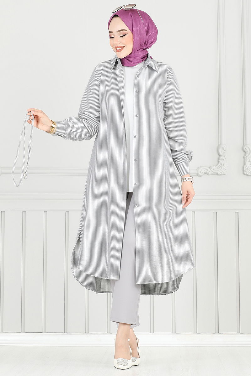 Product Feature : It is a new season hijab fashion product. The product has a Shirt collar. The product has Secret buttons. The tunic has a side slash.. Unlined. Belt included, optional not available. Cuff buttons are active. There may be a tonal difference in the product due to concept photo shoots.