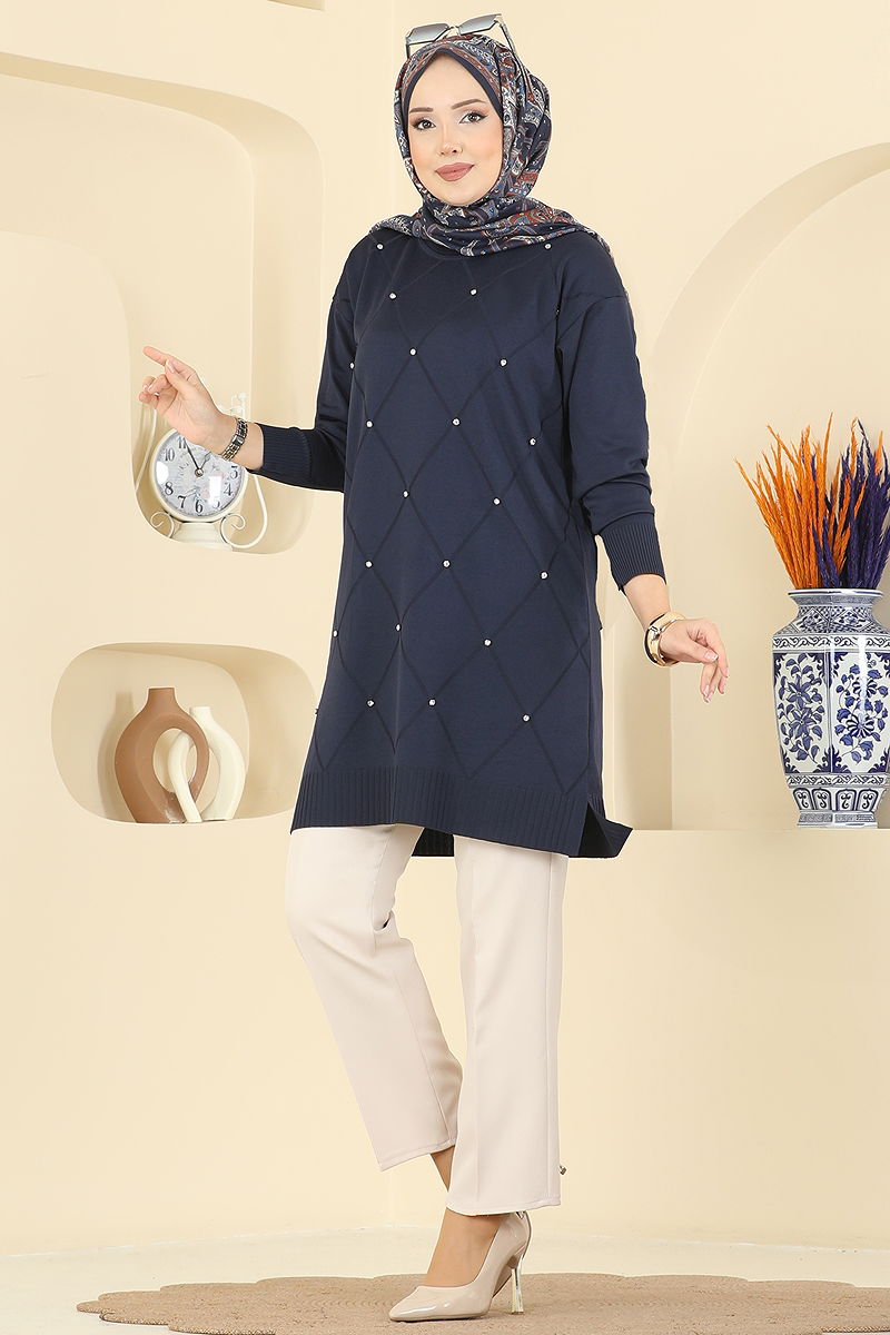 The Diamond Pattern Knit Tunic blends modest fashion with the TUNIC style, making it perfect for the Autumn and Winter seasons. This garment stands out with its machine-washable feature at 30 degrees on a gentle cycle. Designed without a lining and featuring a mandarin collar, this knit tunic offers a contemporary look and fits standard sizes 36-38-40.