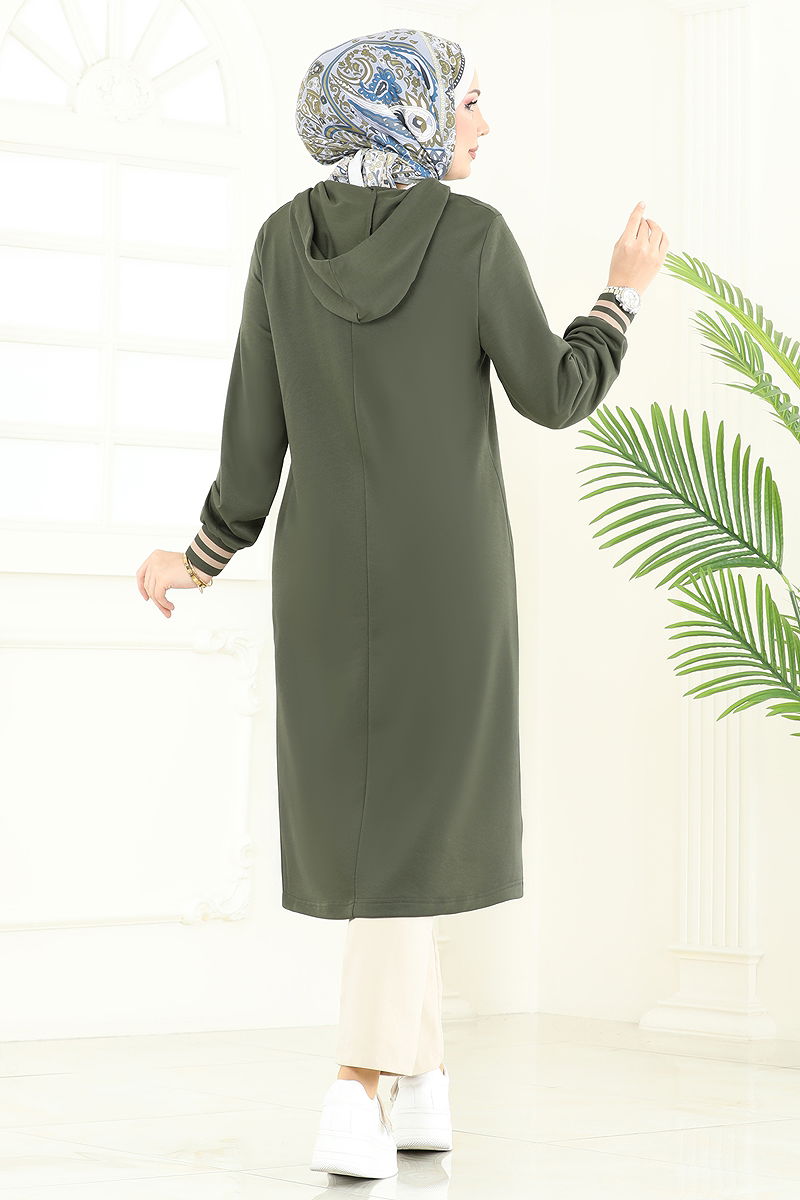يوجد سحاب نصفي يمكن استخدامه من الأمام. المنتج لديه ياقة مع قبعة. البلوز تحتوي على فتحة. غير مبطنة. تم خياطة القبعة مع المنتج تفاصيل الأربطة عبارة عن إكسسوارات. قد يكون هناك اختلاف في الدرجة اللونية في المنتج بسبب التقاط الصور الفوتوغرافية.