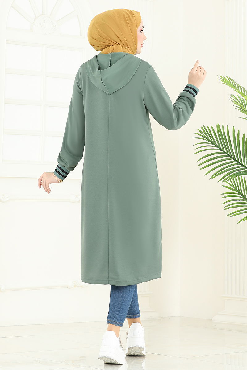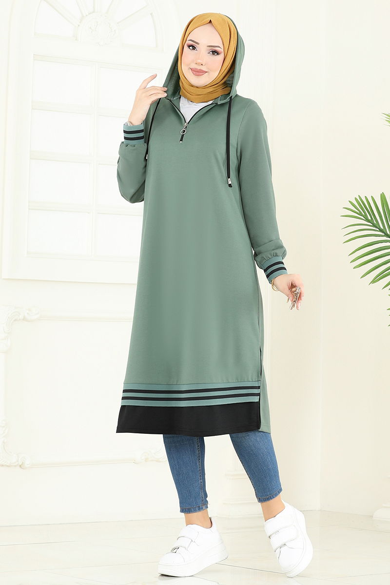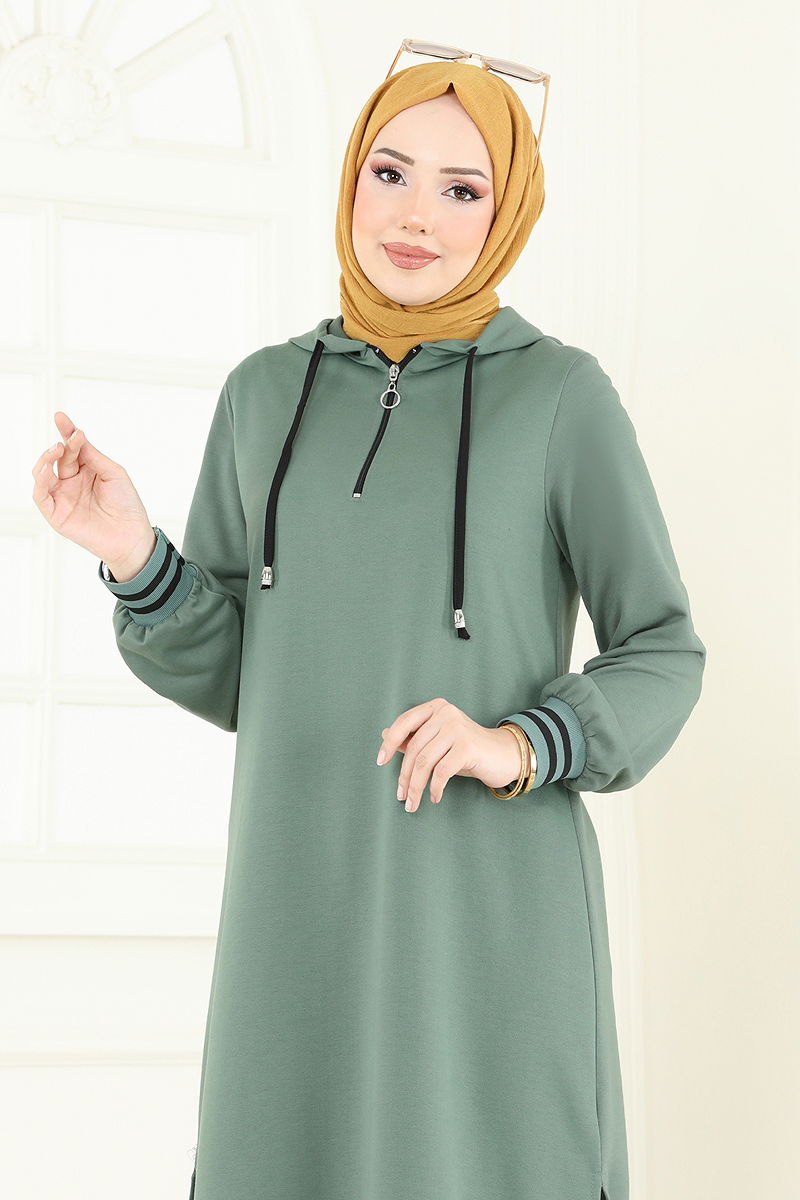 Product Feature : It is a new season hijab fashion product. There is a half zipper that can be used from the front. The product has a Hooded collar. The tunic has a side slash.. Unlined. The hood is sewn to the product. Lacing details are accessories. There may be a tonal difference in the product due to concept photo shoots.