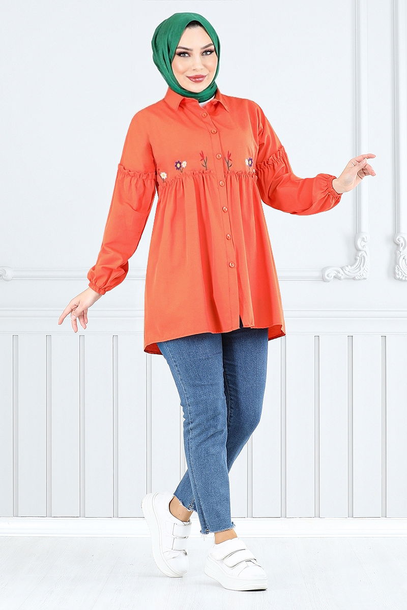Product Feature : It is a new season hijab fashion product. The product has a Shirt collar. The product has From the front buttons. Unlined. Embroidery details are sewn. The cuff is rubberized. There may be a tonal difference in the product due to concept photo shoots.
