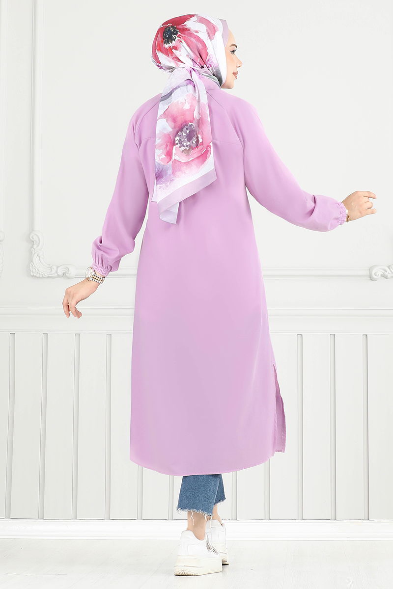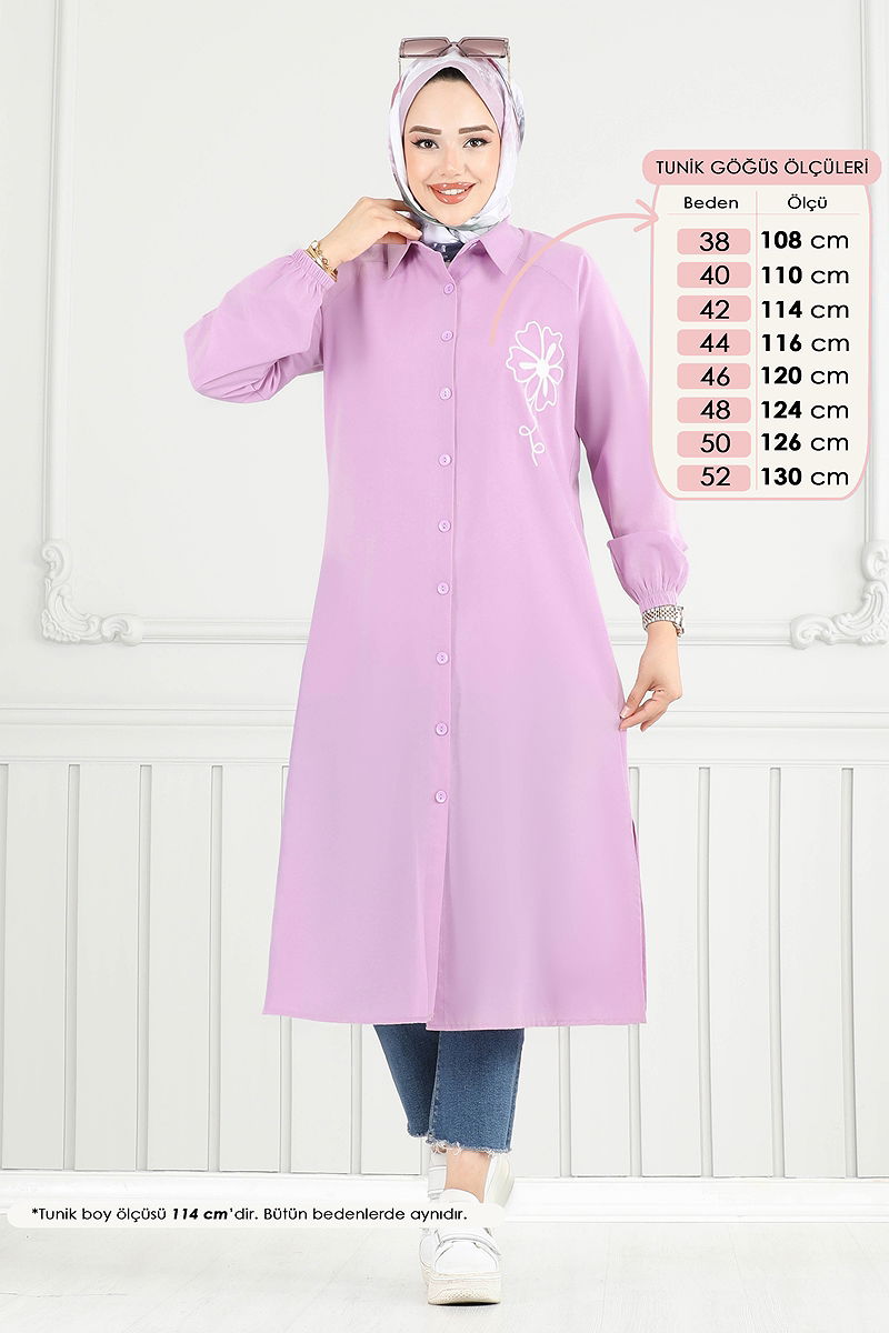 Product Feature : It is a new season hijab fashion product. The product has a Shirt collar. The product has From the front buttons. The tunic has a side slash.. Unlined. Embroidery details are sewn. The cuff is rubberized. There may be a tonal difference in the product due to concept photo shoots.