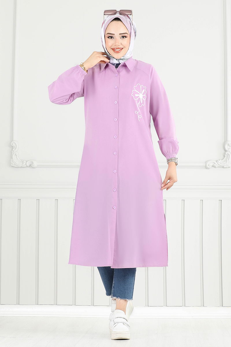 المنتج لديه ياقة القميص. المنتج به أزرار من الأمام. البلوز تحتوي على فتحة. غير مبطنة. يتم خياطة تفاصيل التطريز. السوار مطاطي. قد يكون هناك اختلاف في الدرجة اللونية في المنتج بسبب التقاط الصور الفوتوغرافية.
