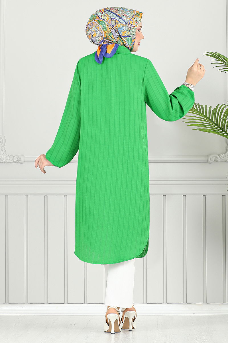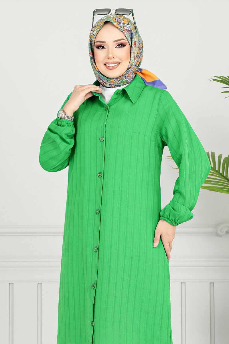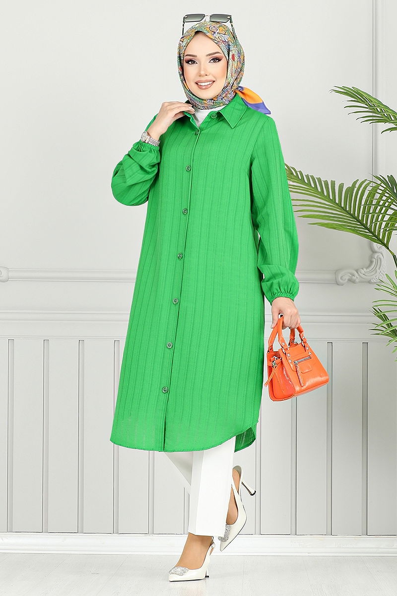 Shirt Collared Hijab Tunic offers comfort for all seasons with its unique design. This item can be washed gently at 30 degrees without wringing. Made from voile cotton fabric, it ensures comfort throughout the day. Capture elegance easily with its shirt collar and front button details. The elastic cuffs provide a functional and aesthetic use.