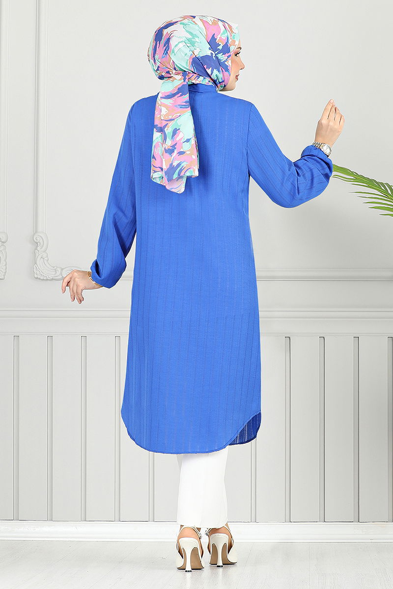 Shirt Collared Hijab Tunic offers comfort for all seasons with its unique design. This item can be washed gently at 30 degrees without wringing. Made from voile cotton fabric, it ensures comfort throughout the day. Capture elegance easily with its shirt collar and front button details. The elastic cuffs provide a functional and aesthetic use.