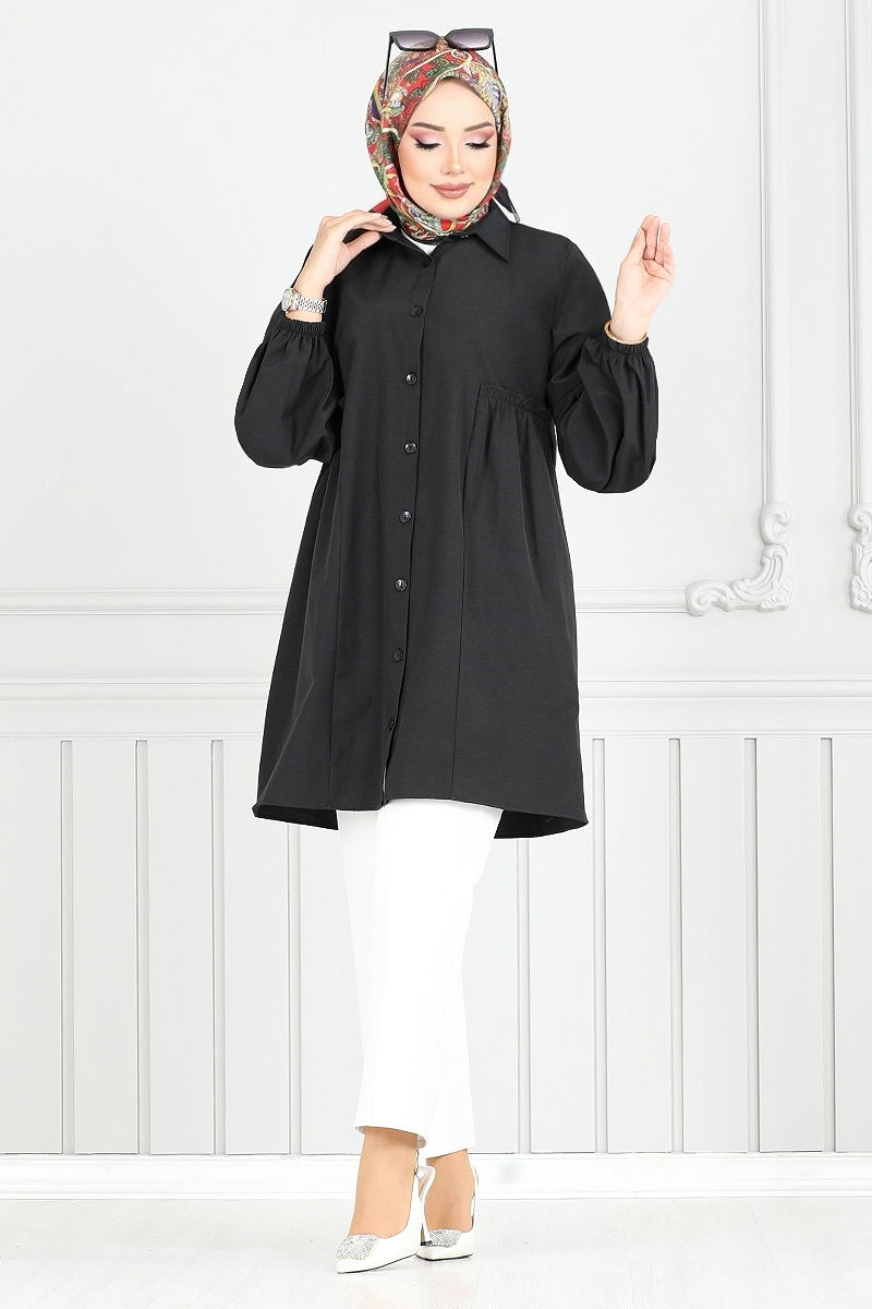 Product Feature : It is a new season hijab fashion product. The product has a Shirt collar. The product has From the front buttons. Unlined. The cuff is rubberized. There may be a tonal difference in the product due to concept photo shoots.