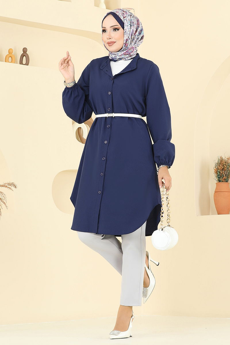 المنتج لديه ياقة بيضوية. المنتج به أزرار من الأمام. غير مبطنة. الحزام غير متضمن. السوار مطاطي. قد يكون هناك اختلاف في الدرجة اللونية في المنتج بسبب التقاط الصور الفوتوغرافية.