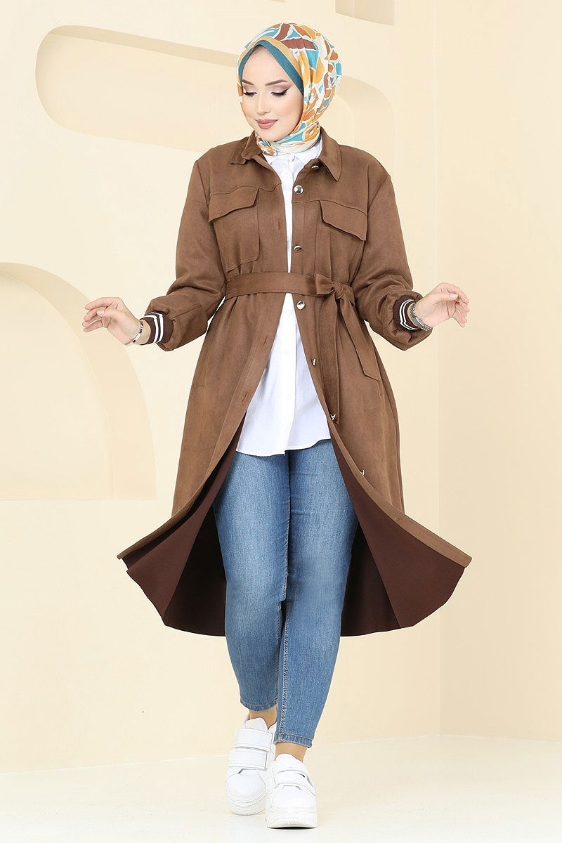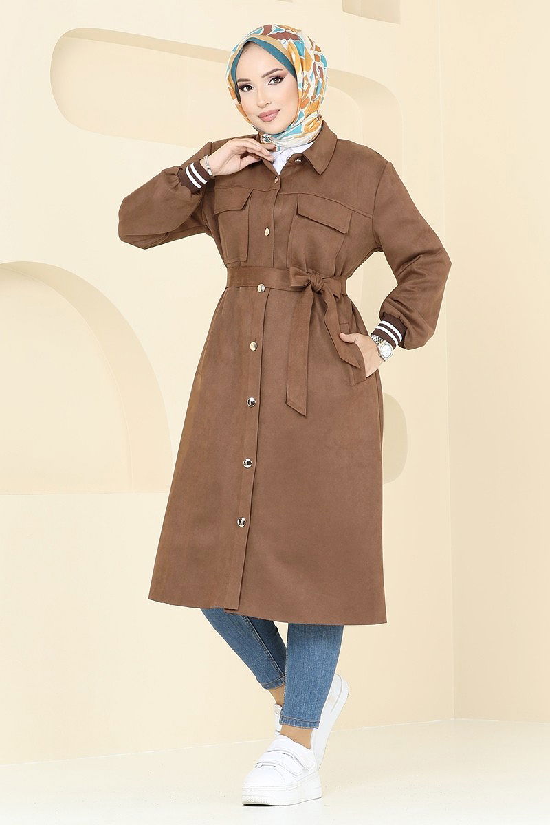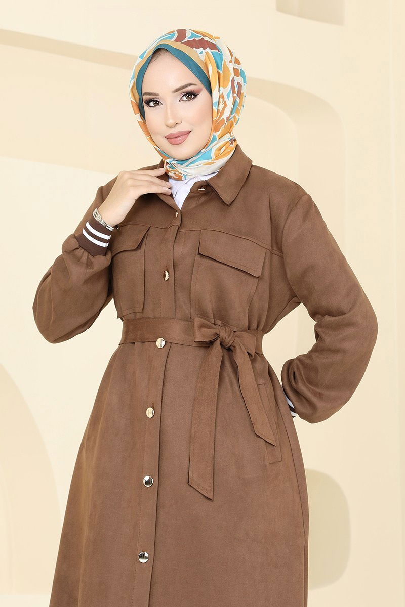 المنتج لديه ياقة القميص. المنتج به أزرار من الأمام. غير مبطنة. الحزام متضمن، ،يمكن استخدامها حسب الرغبة الجيب الصدري نشط. قد يكون هناك اختلاف في الدرجة اللونية في المنتج بسبب التقاط الصور الفوتوغرافية.