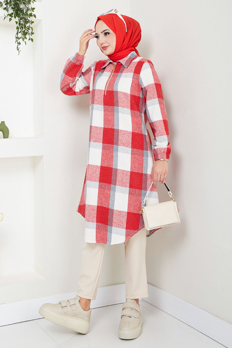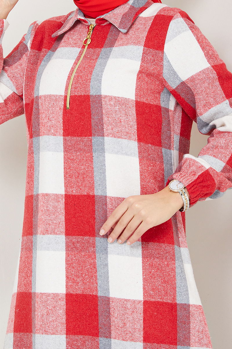 يوجد سحاب نصفي يمكن استخدامه من الأمام. المنتج لديه ياقة القميص. غير مبطنة.. قد يكون هناك اختلاف في الدرجة اللونية في المنتج بسبب التقاط الصور الفوتوغرافية.