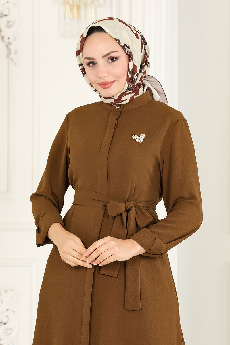 Product Feature : It is a new season hijab fashion product. The product has a Half Judge collar. The product has From the front buttons. Unlined.. Belt included, optional not available. Cuff buttons are active. There may be a tonal difference in the product due to concept photo shoots.