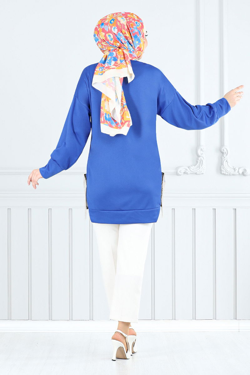المنتج لديه ياقة دائرية. غير مبطنة. يتم خياطة السلسلة على المنتج. قد يكون هناك اختلاف في الدرجة اللونية في المنتج بسبب التقاط الصور الفوتوغرافية.