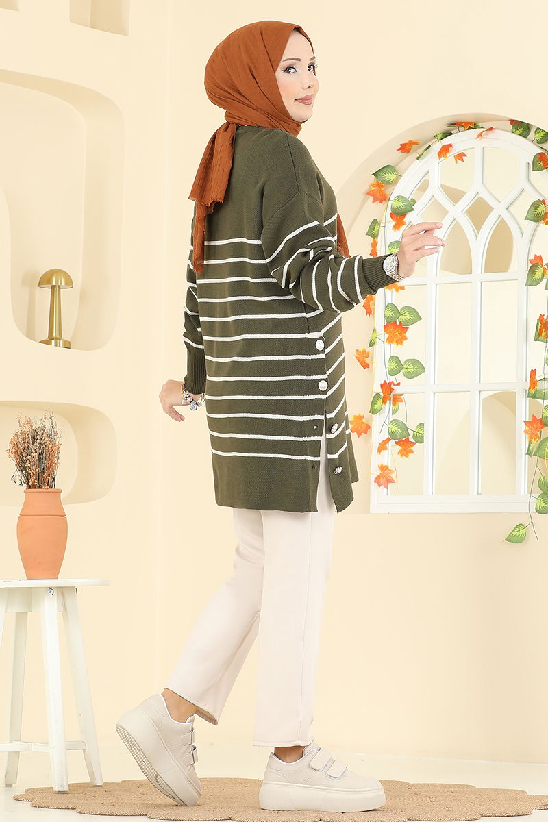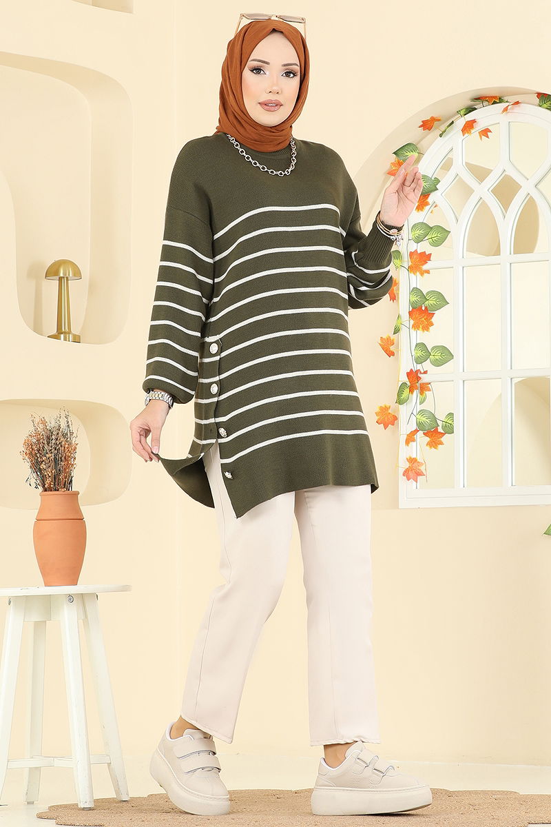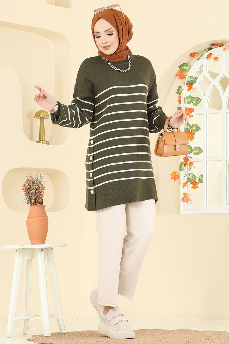 Tuniği Çizgili Triko Tunik 2751AYD574 Haki