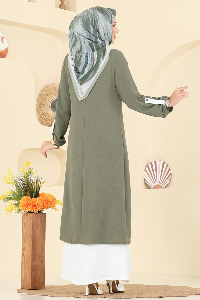 Tuniği Yırtmaçlı Elbiseli Takım 2742SL432 Çağla&Ekru