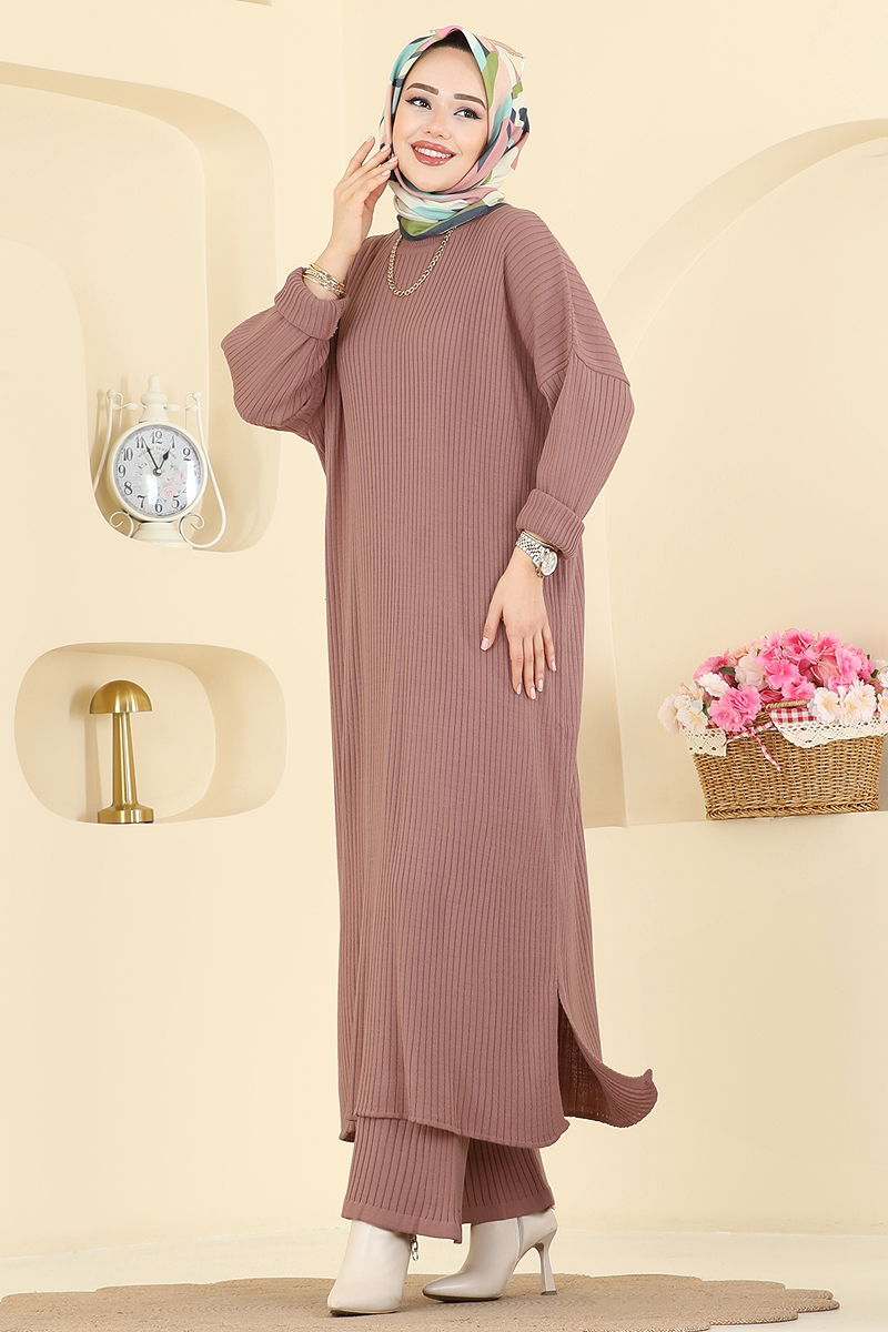Tuniği Yırtmaçlı Triko Takım Gül Kurusu