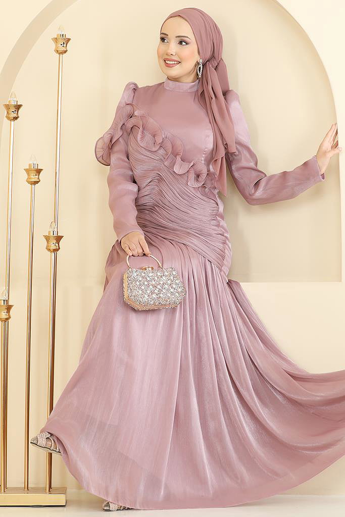 Volan Detaylı Organze Abiye 157D170 Pudra