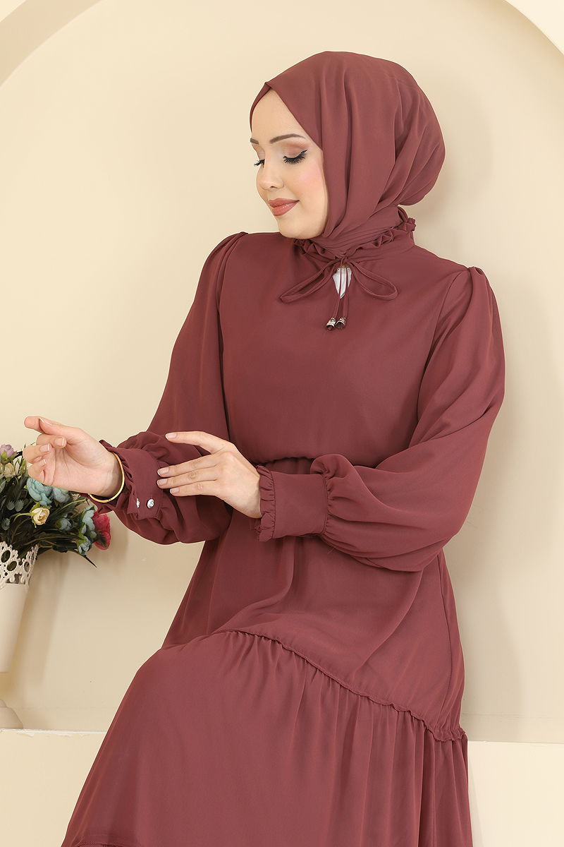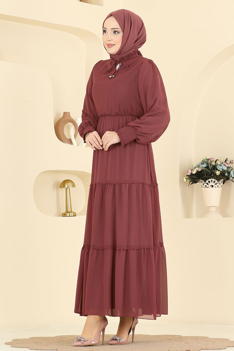 Yaka Bağcıklı Şifon Elbise 6268BSK463 Bakır