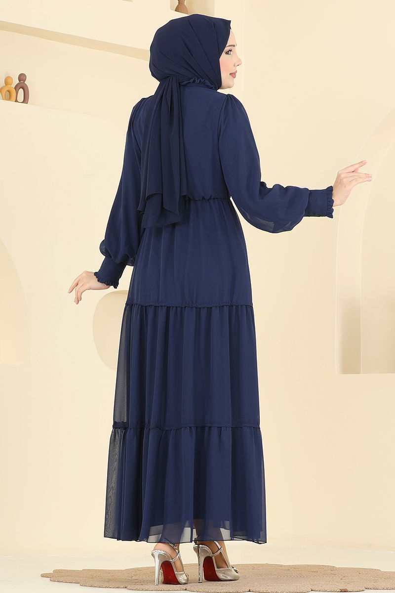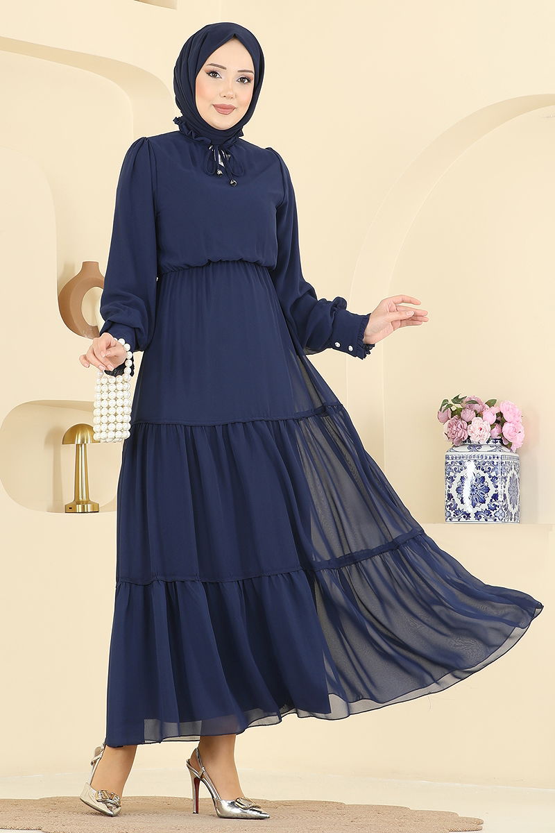 Yaka Bağcıklı Şifon Elbise 6268BSK463 Laci