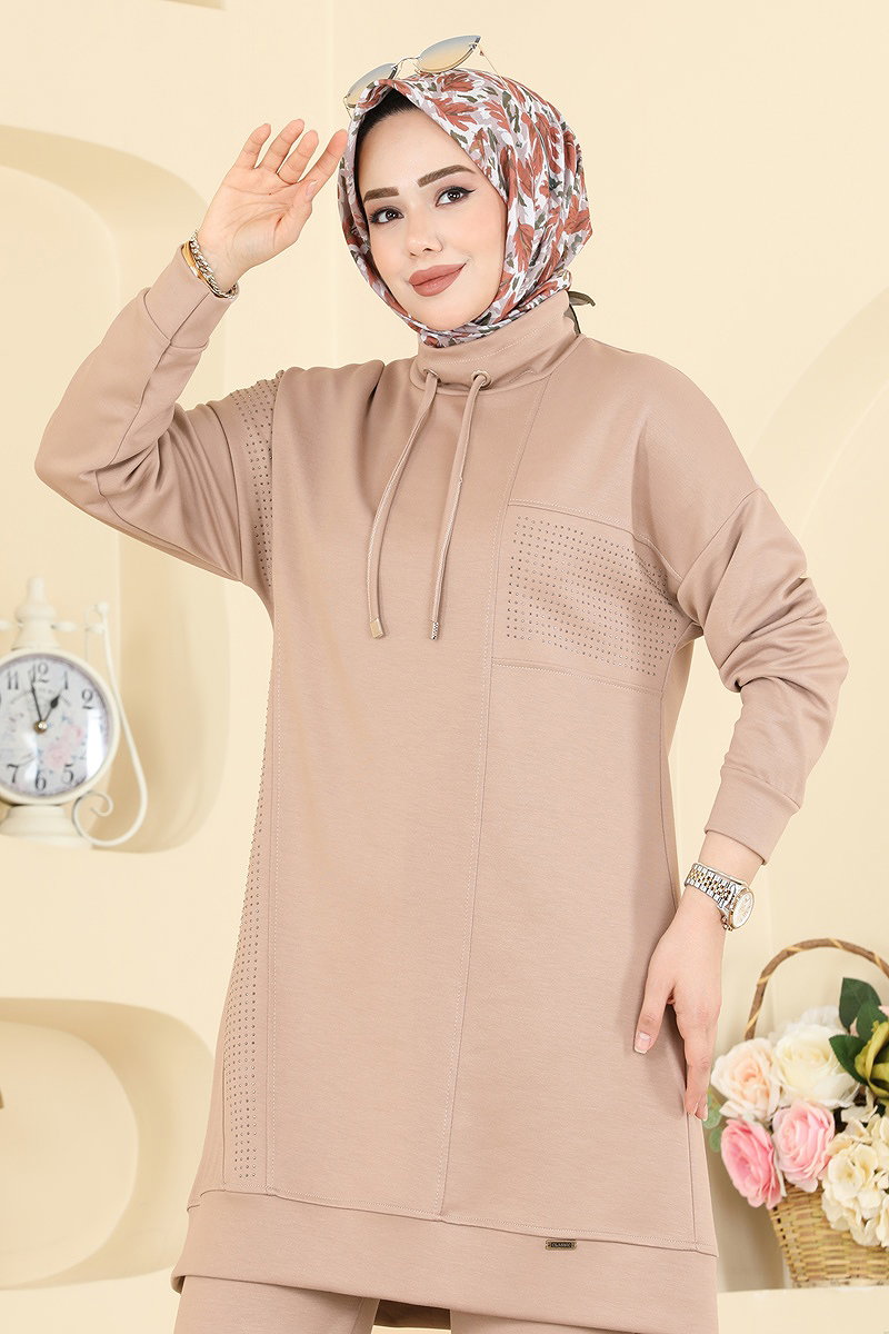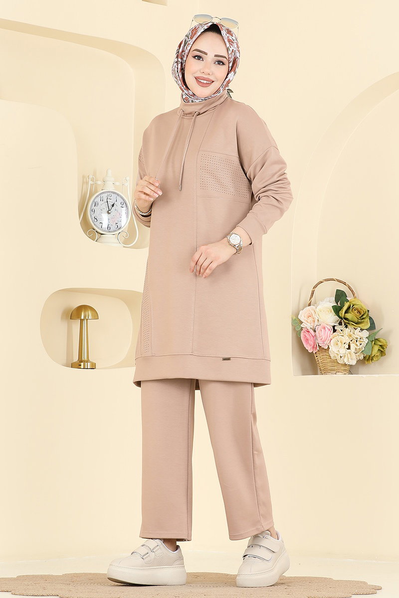 Yakası Bağcıklı Modal Takım 2786AYD574 Taş