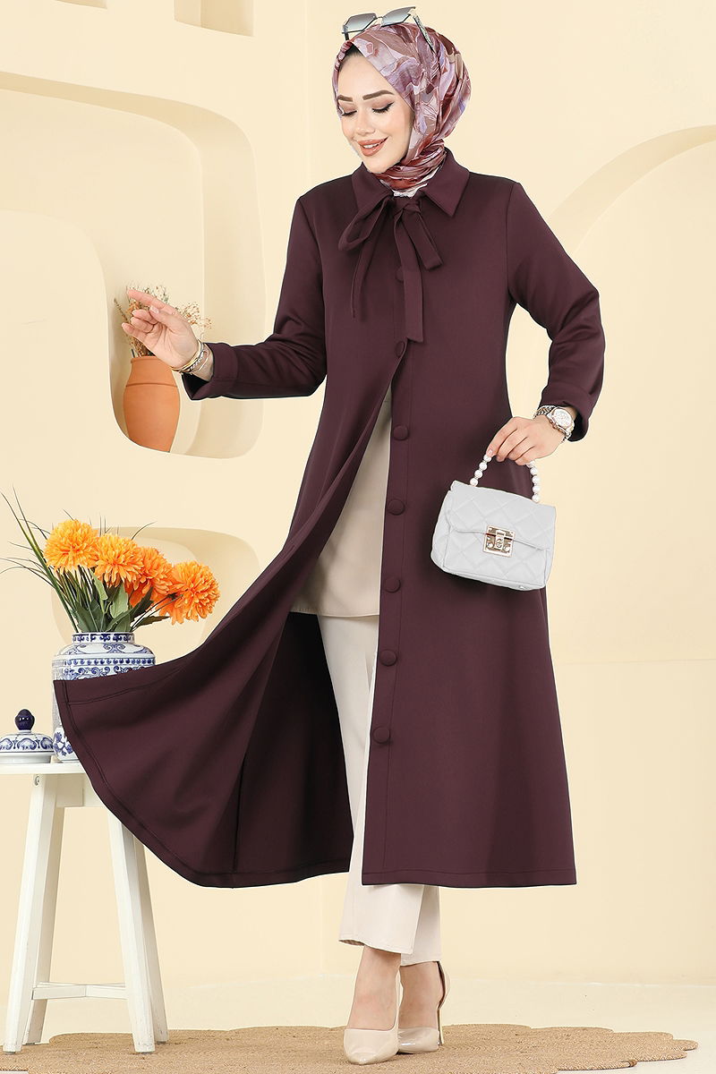 Şık ve işlevsel: Yakası Fiyonk Detaylı Kap! Bu zarif tesettür kap, dört mevsim rahatlıkla giyilebilir. Hassas scuba kumaşı sayesinde şeklini koruyarak uzun ömürlü kullanım sağlar. 30 derecede hassas yıkama ile temizlenmesi önerilir. Gömlek yaka ve ön düğme detayları ile klasik ve modern çizgileri bir arada sunar. Astarsız yapısı ve gizli cep detayı ile pratik bir kullanım sunan bu kap, bağcıklı tasarımı ile de vücuda mükemmel uyum sağlar.