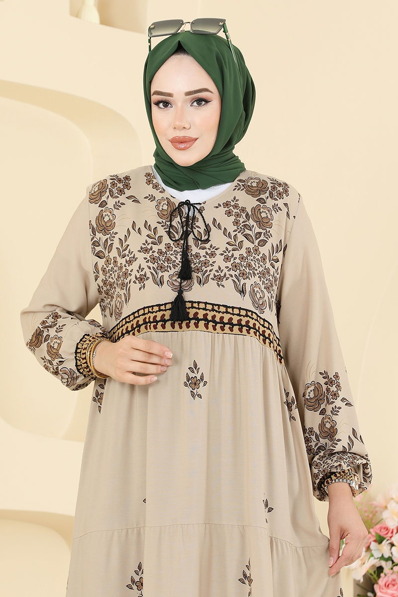 Yakası Bağcıklı Viskon Elbise, dört mevsim rahatlıkla kullanabileceğiniz tesettür bir modeldir. Viskon kumaşı sayesinde hafif ve konforlu bir kullanım sunar. V yaka tasarımı şıklığınızı ön plana çıkarırken, manşetleri lastikli olduğu için pratik bir kullanım sağlar. Hassas yıkama programında 30 derecede yıkanabilir ve astarsız yapısıyla hafifliğini korur. Modelin üzerindeki ürün 40 bedendir, farklı beden seçenekleri ile sizlere sunulmaktadır.