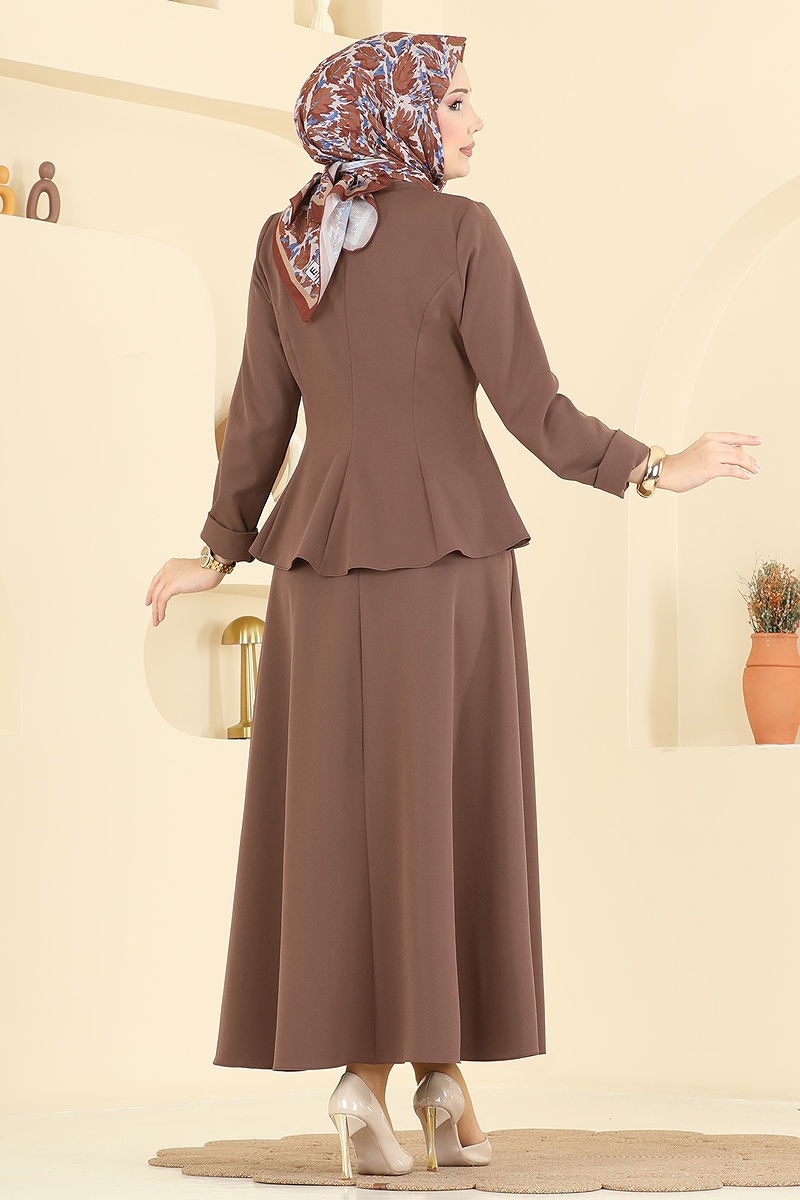 Yakası Bağlamalı Dabıl Takım Kahve