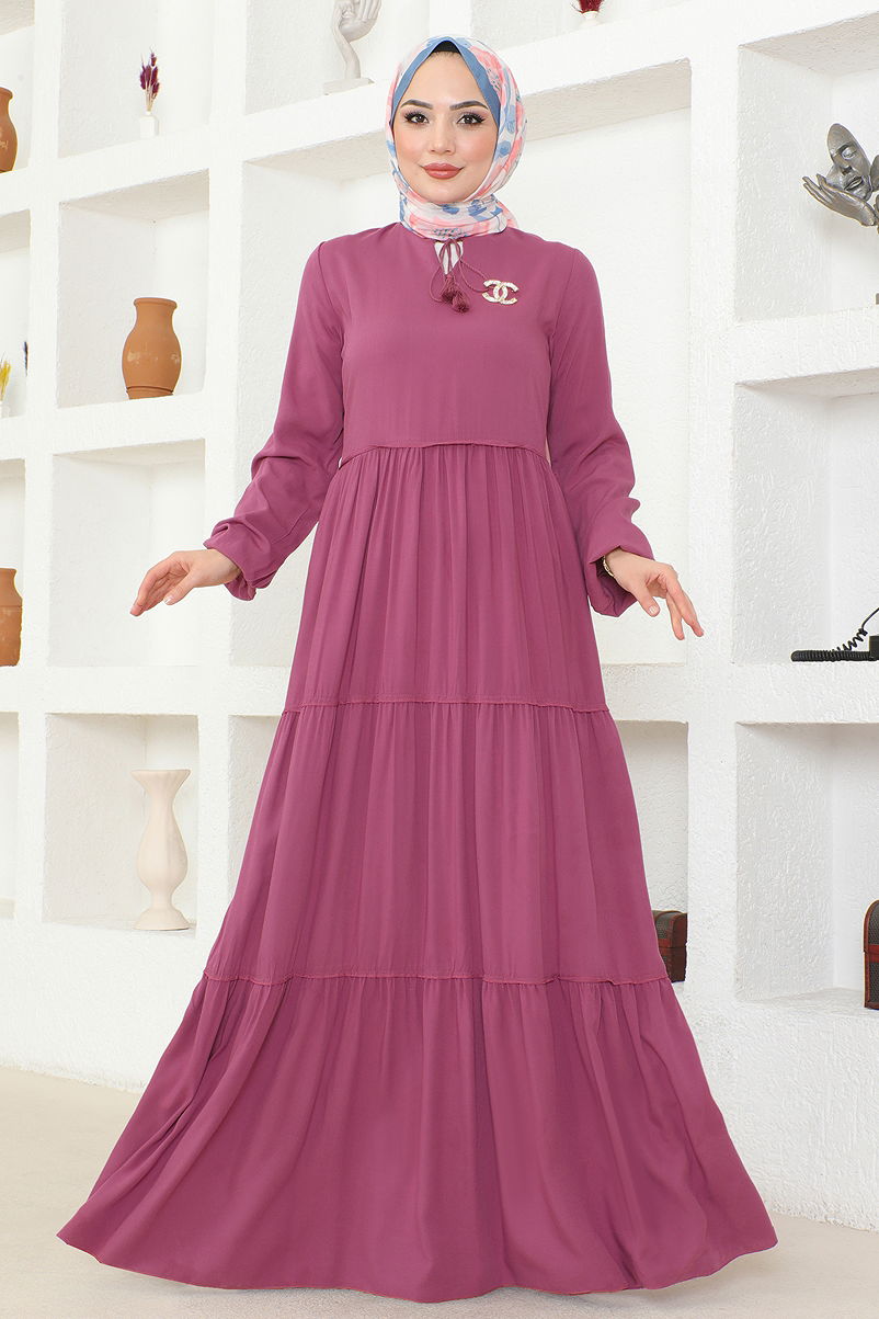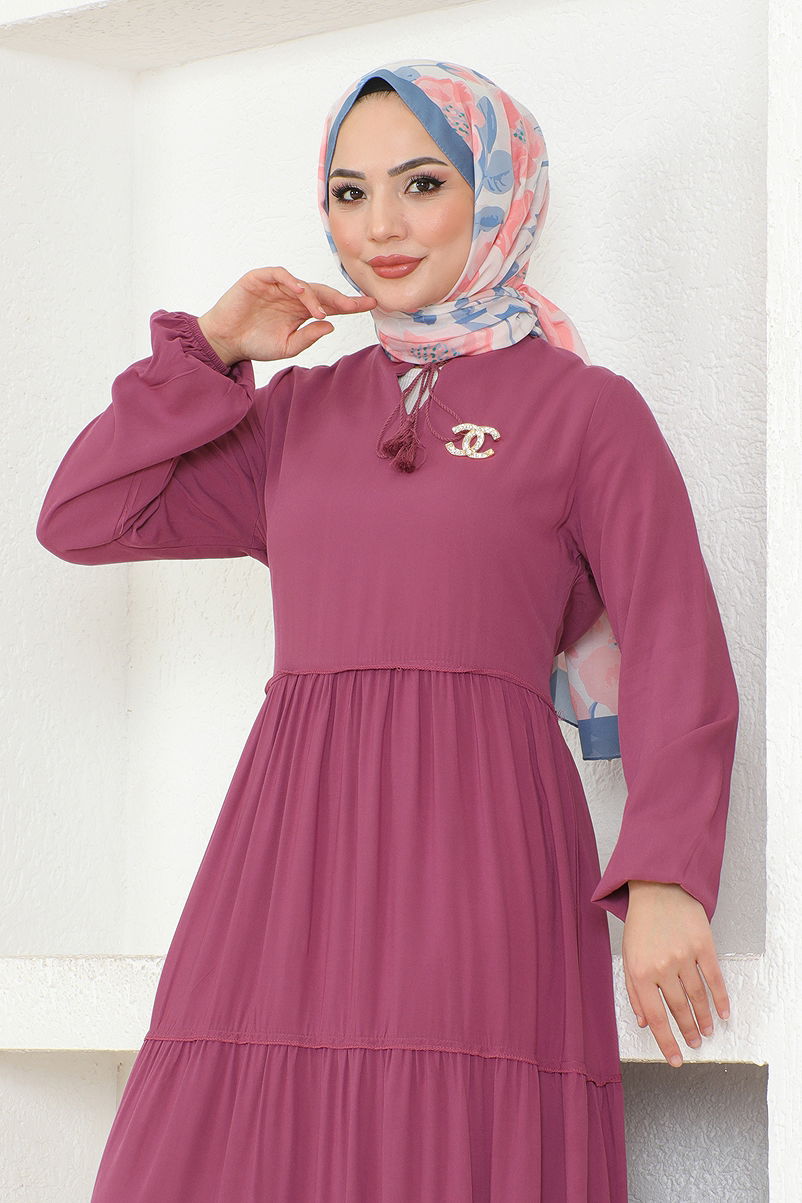 The Tie-Neck Viscose Dress is a specially designed modest wear product. Suitable for use in spring and summer, this dress is made from breathable viscose fabric. It features a bike neck and elasticated cuffs for a modern look. The dress is unlined, making it light and convenient to wear. Hand washing is recommended. Model dimensions: Height: 160 cm, Chest: 86 cm, Waist: 68 cm, Hips: 95 cm, Weight: 55 kg. Ideal for those looking for stylish and comfortable options.