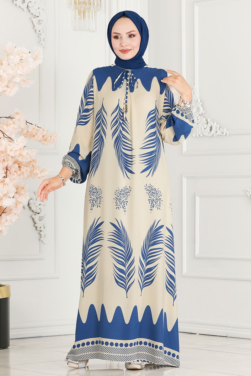 Yakası Bağlamalı Viskon Elbise model tesettür ürünüdür. İlkbahar ve Yaz sezonunda kullanılabilir. Elde yıkama yapılmalıdır. Birinci sınıf Viskon kumaştan imal edilmiştir. Ürün Bisiklet yakadır. Astarsızdır. (Modelin üzerindeki ürün 38 bedendir.) Ürün bağcıklıdır. Manşet lastiklidir.