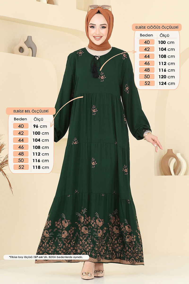 Yakası Bağlamalı Viskon Elbise size dört mevsim rahatlık ve şıklık sunar. Bisiklet yakası ve lastikli manşetleri ile modern bir görünüm verirken, viskon kumaşı sayesinde gün boyu konfor sağlar. Hem şık hem de pratik olan bu elbise, elde yıkama ile temizlenmelidir. Tesettür giyim için uygundur. Üründe kullanılan model 40 bedendir.
