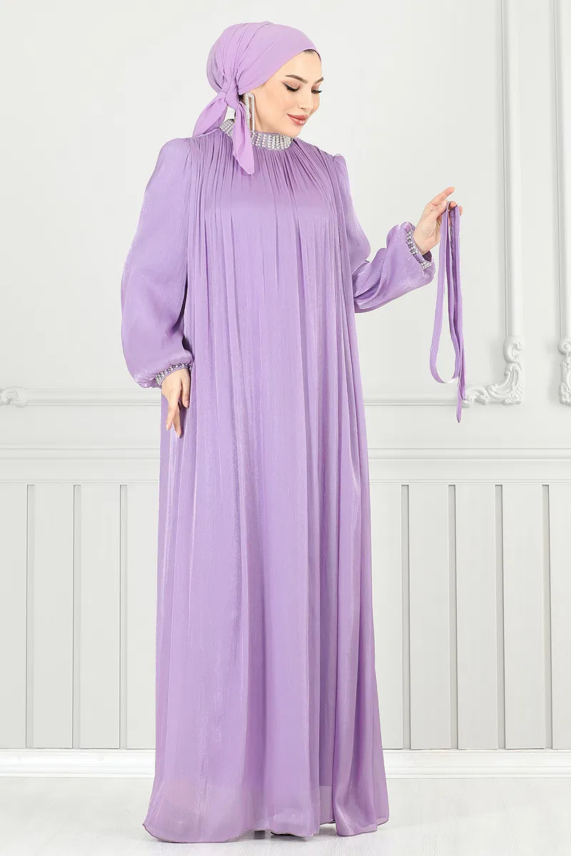 Yakası İncili Tesettür Abiye, modeliyle şıklığı ve zarafeti bir arada sunuyor. Dört Mevsim boyunca rahatlıkla kullanılabilir olan bu abiye, sadece kuru temizleme ile temizlenmelidir. Parlak kumaştan üretilmiş olan bu ürün, hakim yakası ve astarlı yapısıyla dikkat çeker. Sırttan fermuarlı tasarımı kolay kullanım sağlar. İnci detayları ile göz kamaştıran bu abiyenin kemer detayı ise dalgalanmayı önlemek için özel olarak dikilmiştir. Kemer, ürüne dahil olup isteğe bağlı olarak çıkarılabilir. Beden ve boy ölçüleriniz için ideal bir seçim.