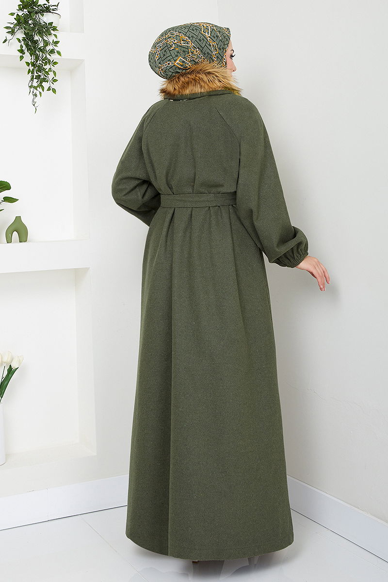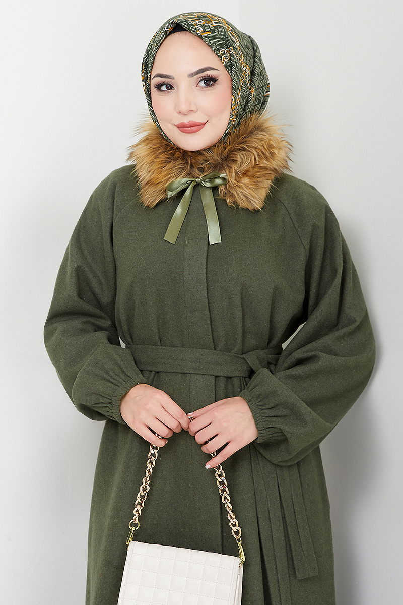 Yakası Kürklü Kaban Haki